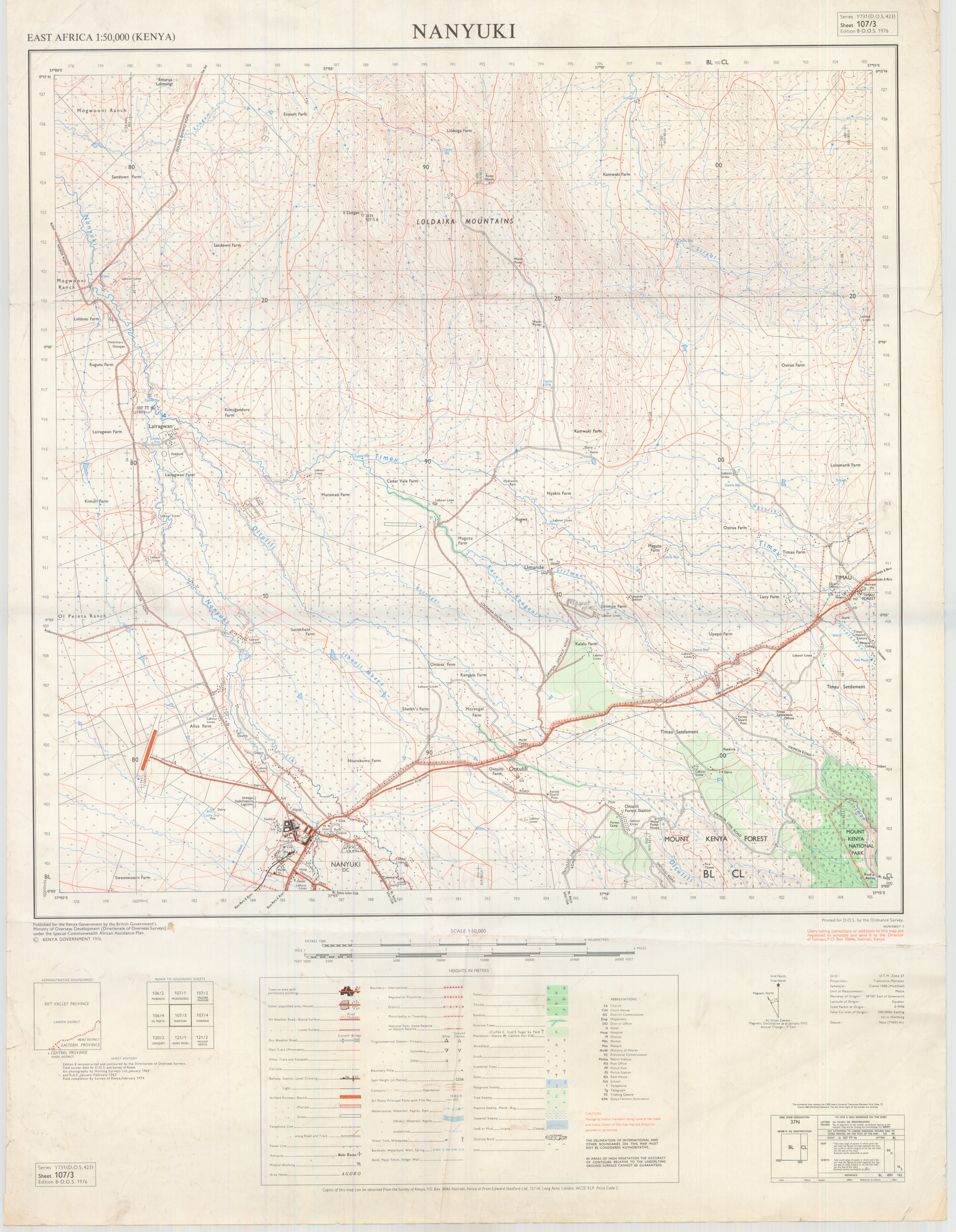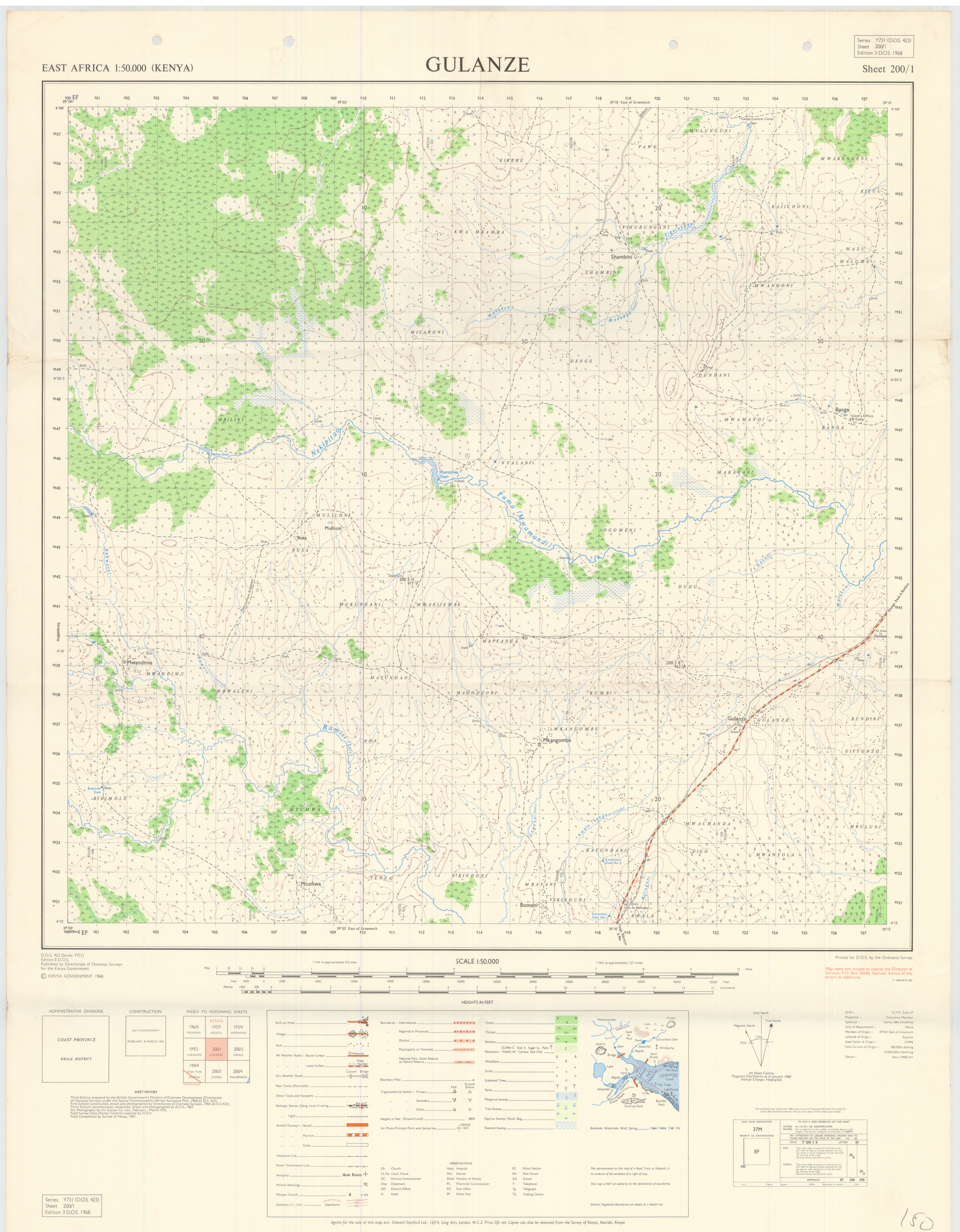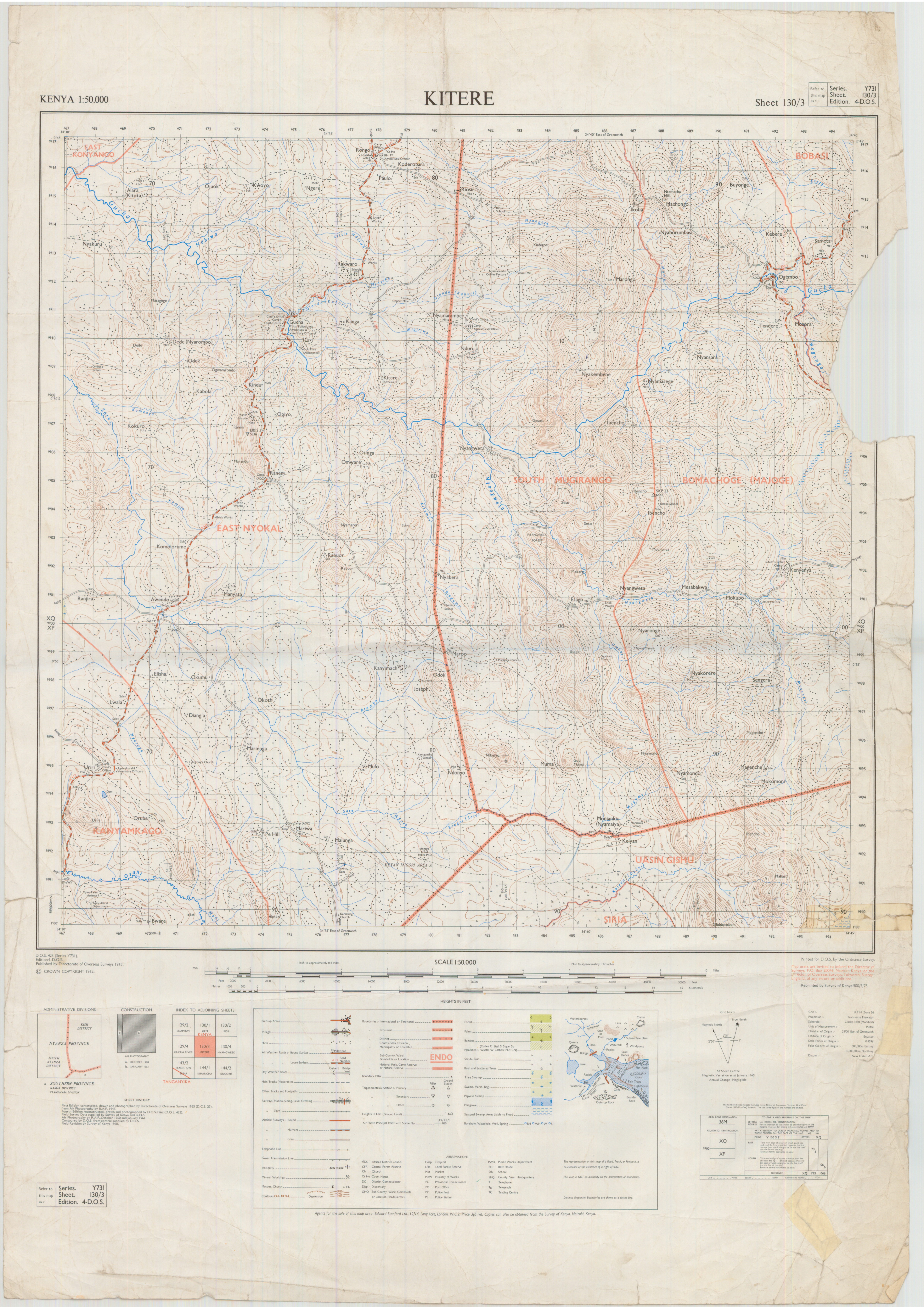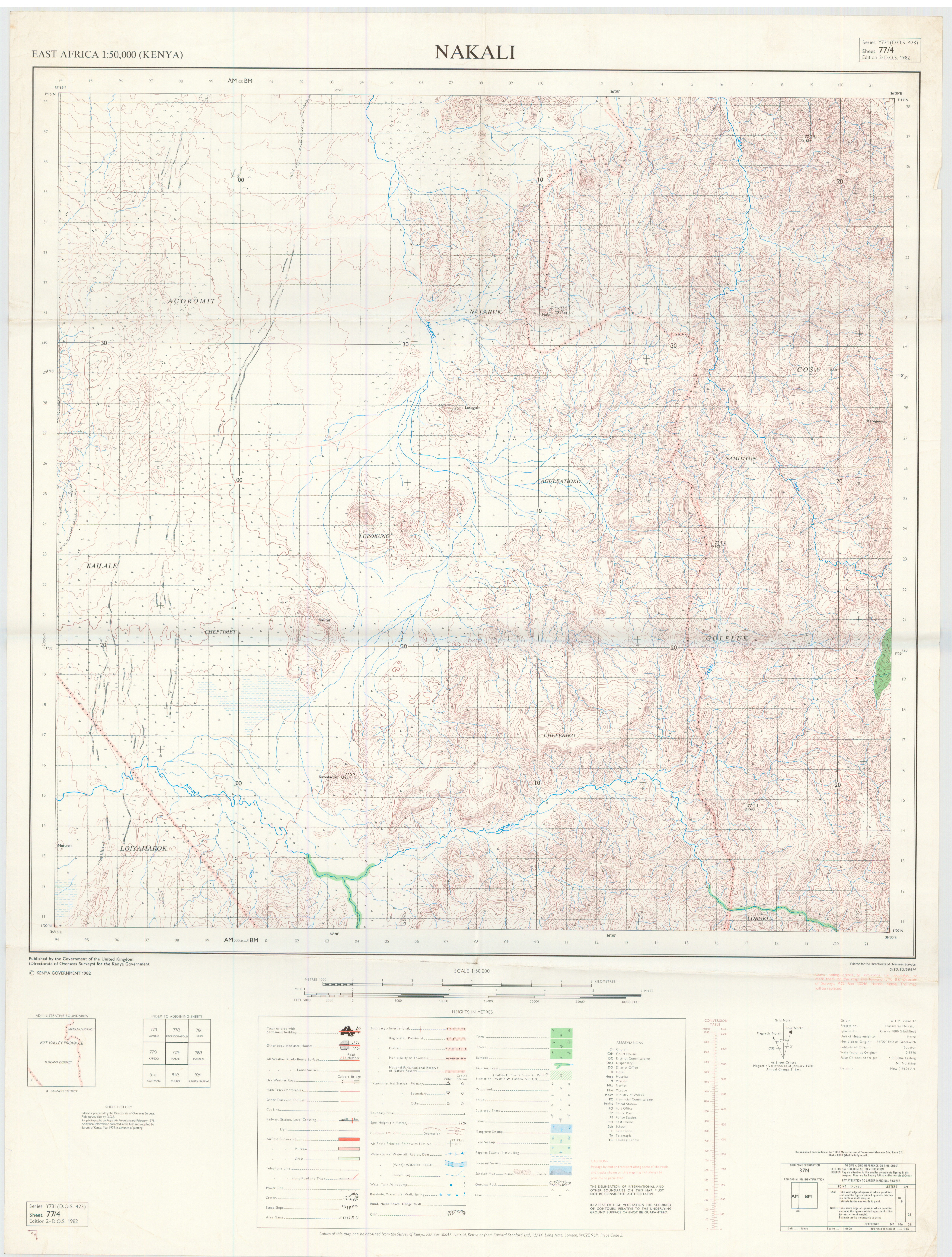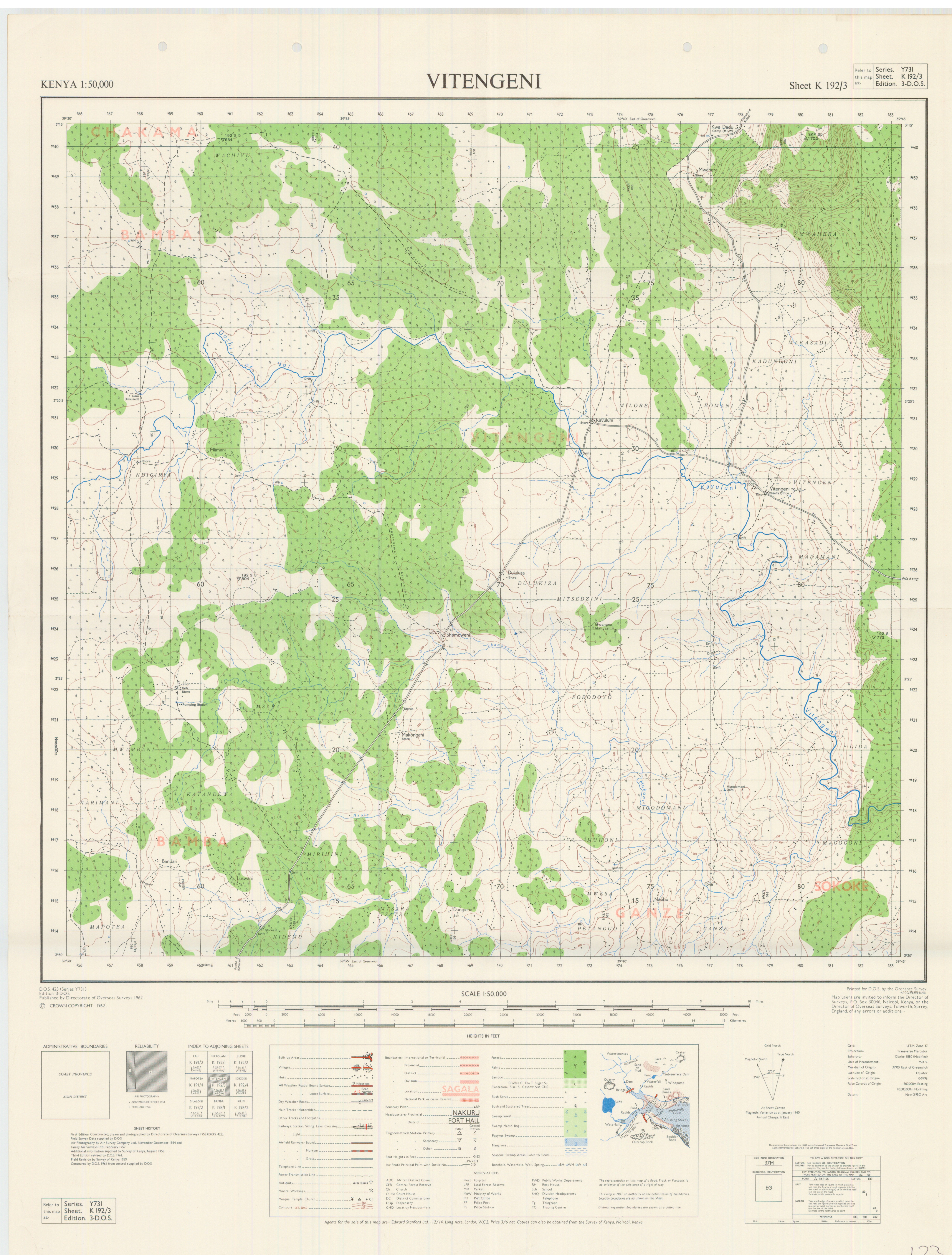 Topographic maps of Kenya 1:50,000 produced by the Survey of Kenya, Great Britain Directorate of Military Survey, Great Britain War Office, Great Britain Air Ministry and the Great Britain War Office, General Staff. Set numbers GSGS Y731, DOS 423, DOS 23, SK 11, GSGS 4786 and DCS 23.