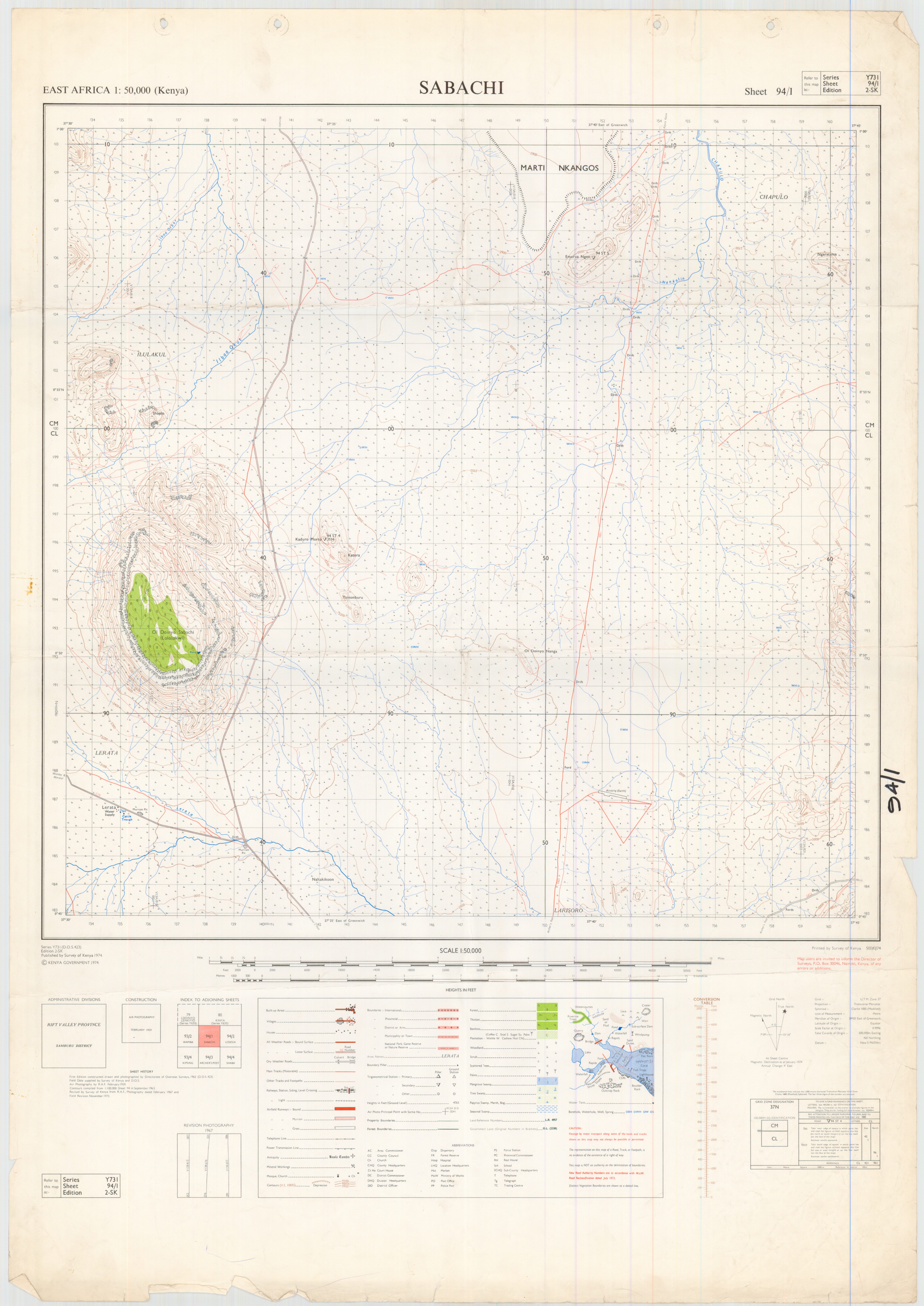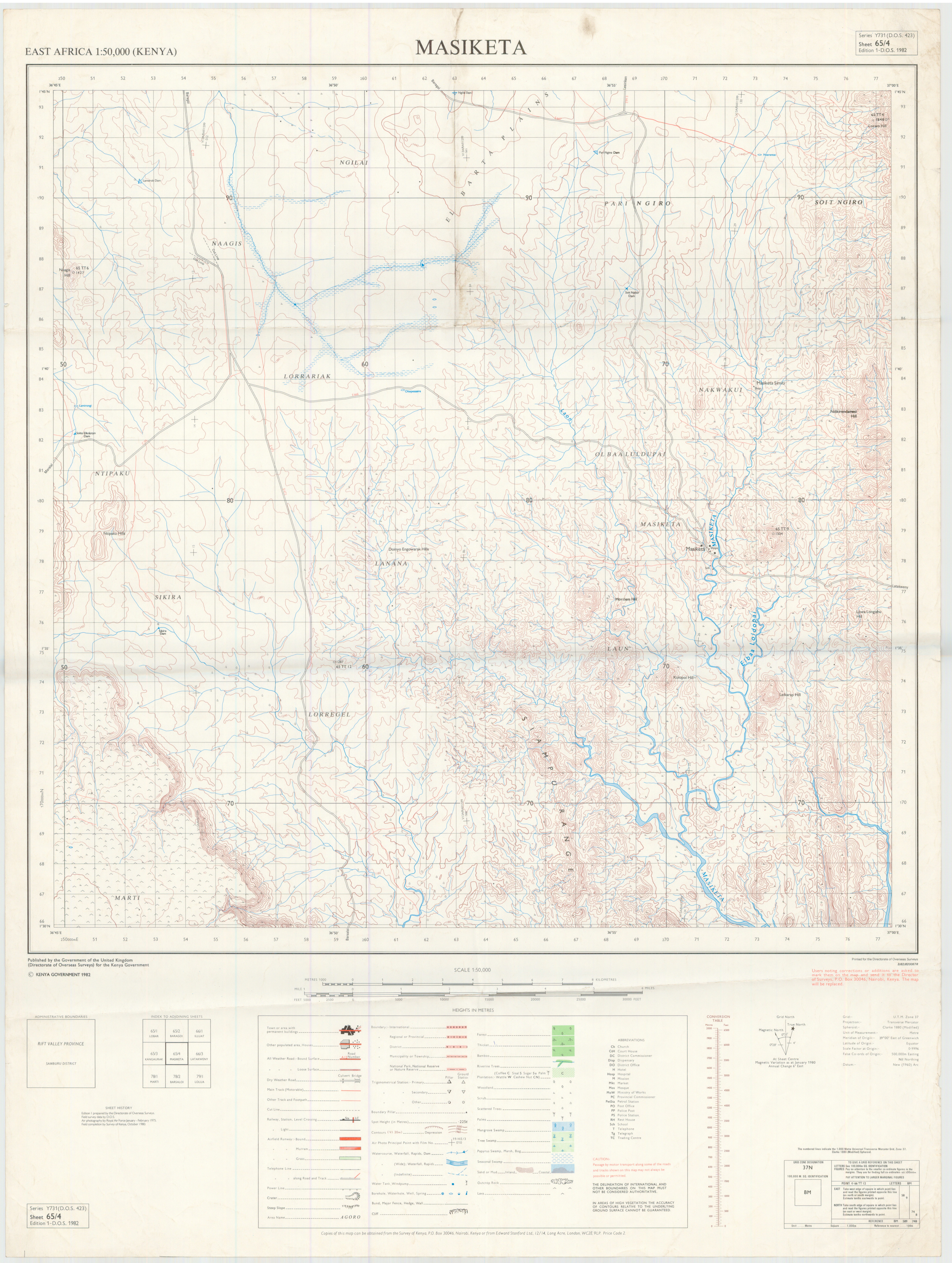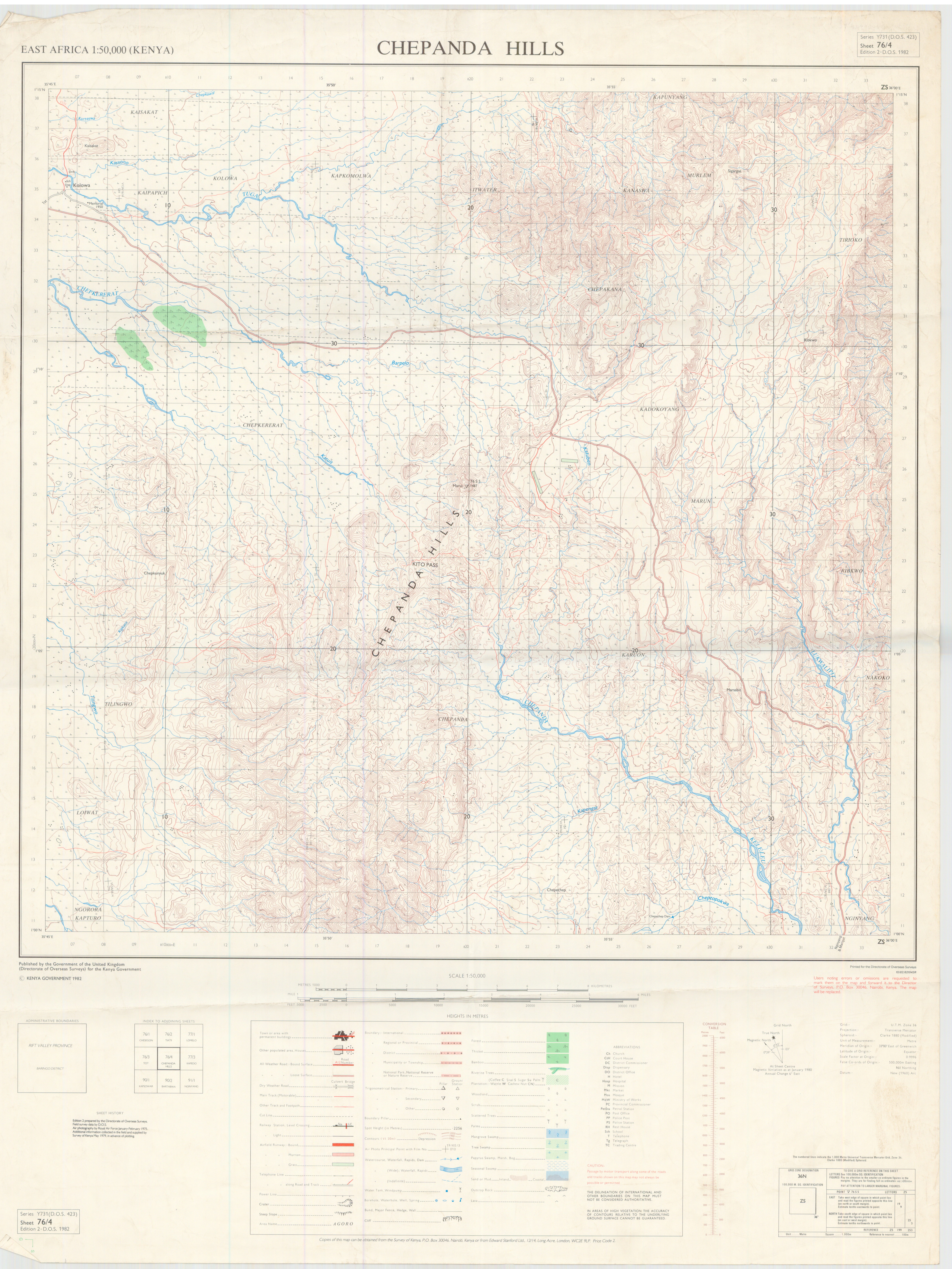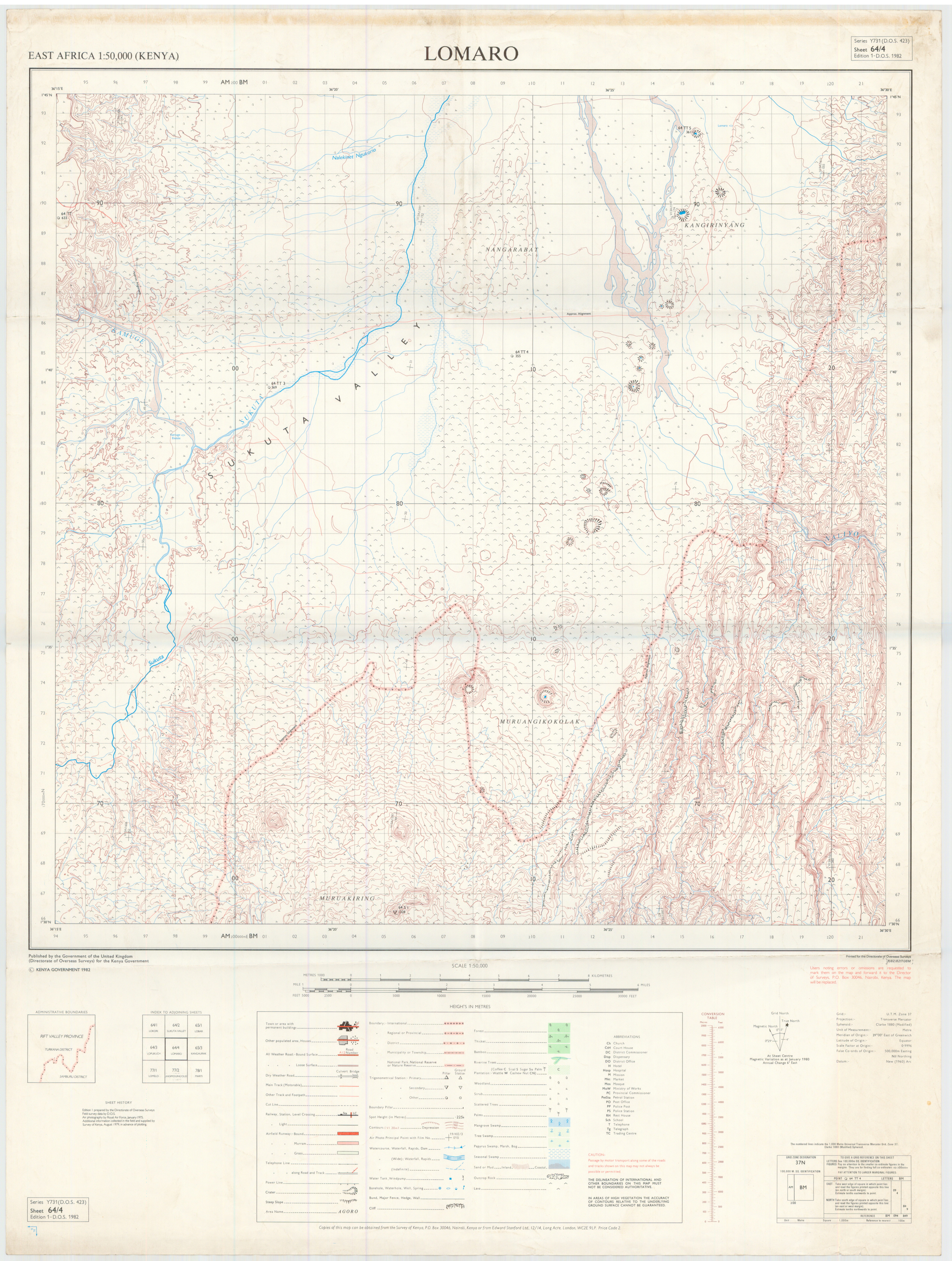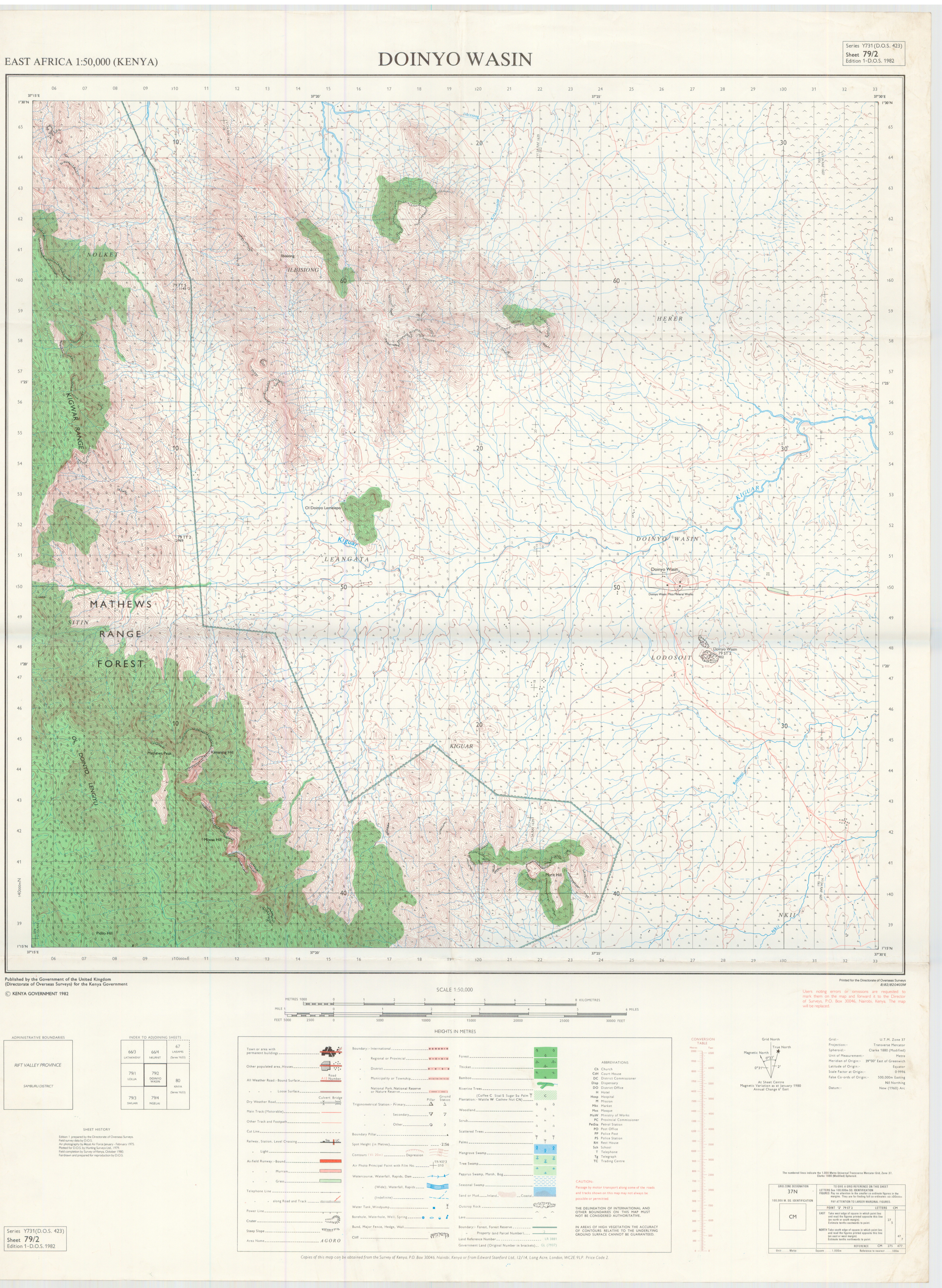 Topographic maps of Kenya 1:50,000 produced by the Survey of Kenya, Great Britain Directorate of Military Survey, Great Britain War Office, Great Britain Air Ministry and the Great Britain War Office, General Staff. Set numbers GSGS Y731, DOS 423, DOS 23, SK 11, GSGS 4786 and DCS 23.