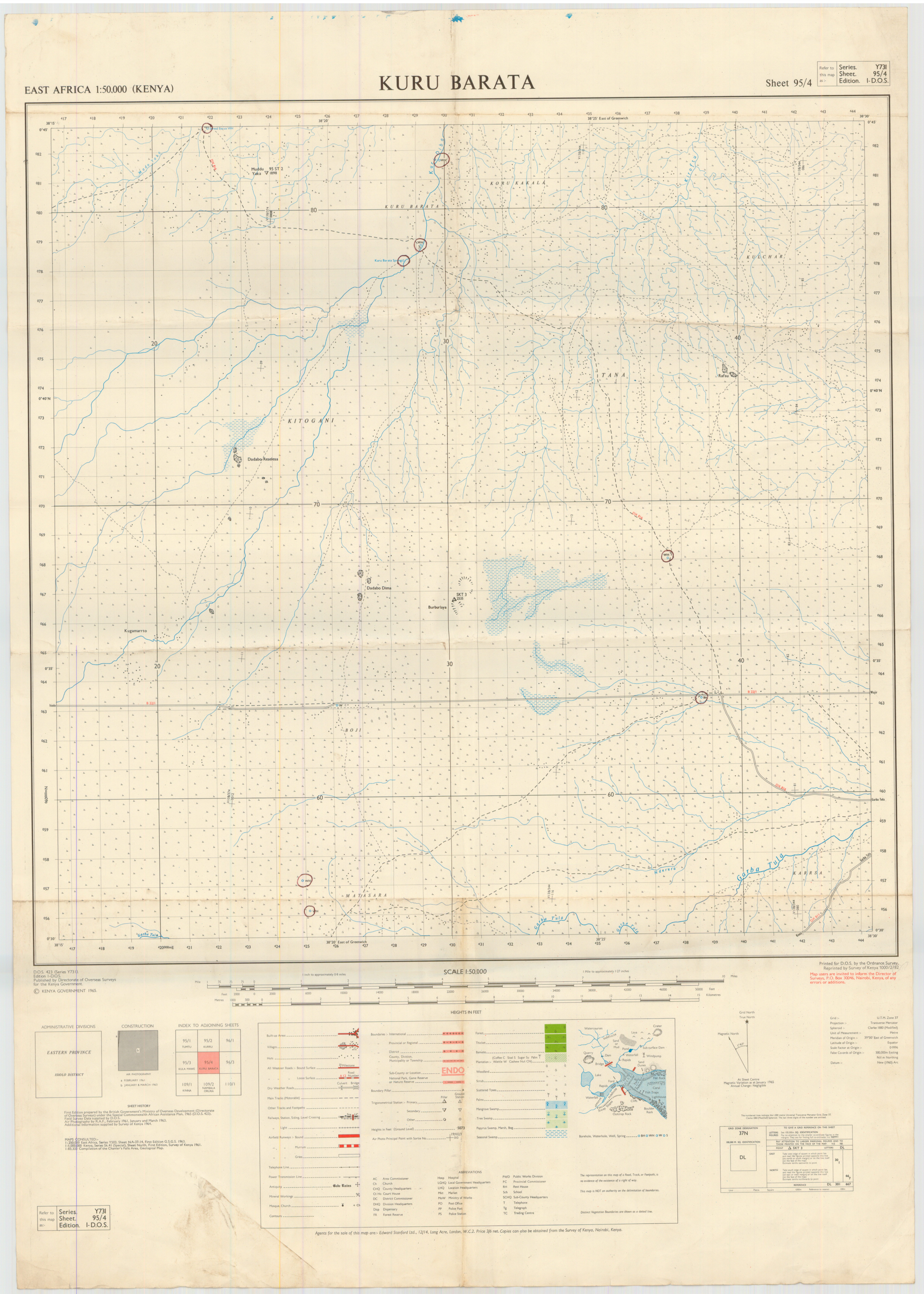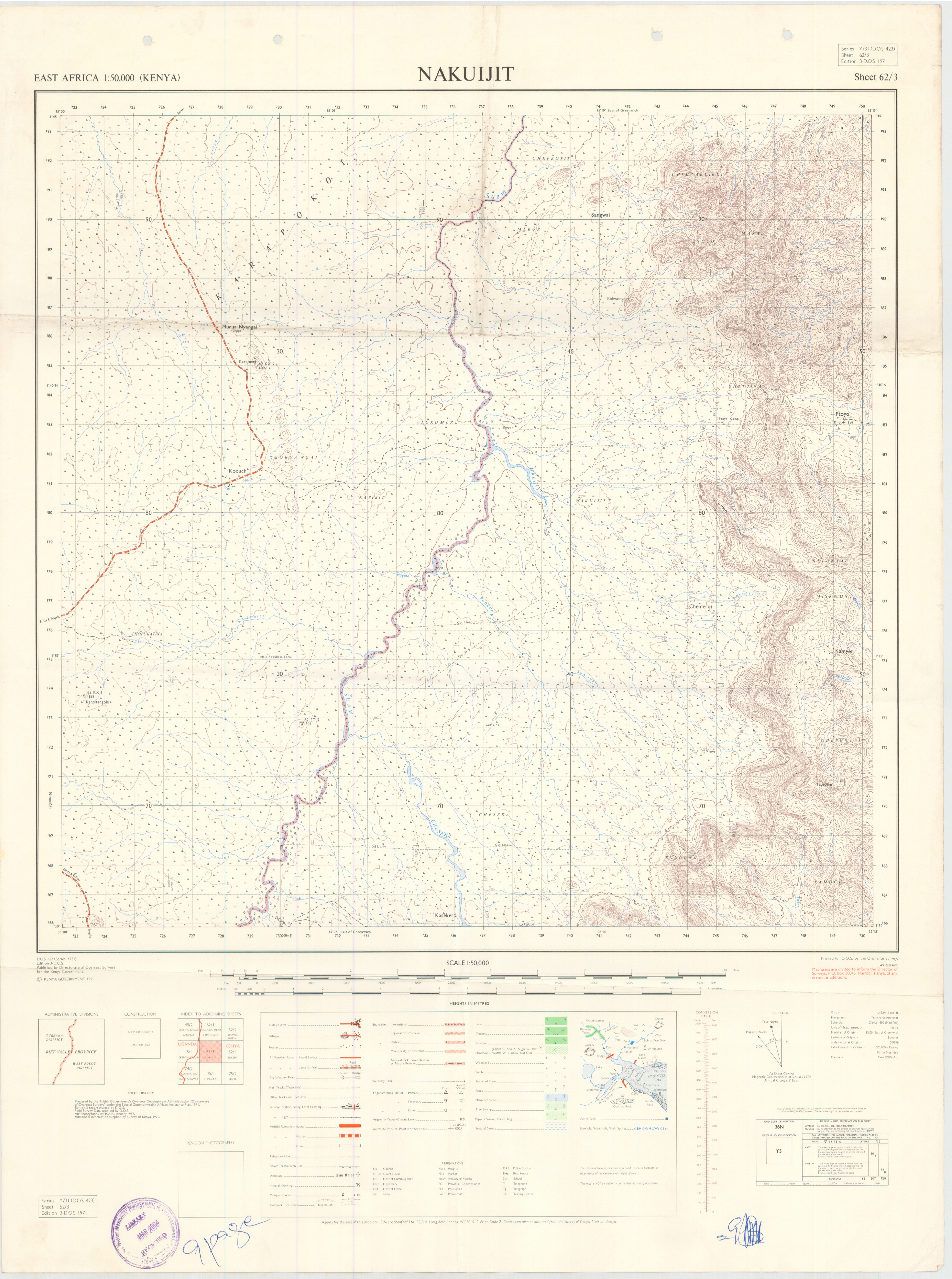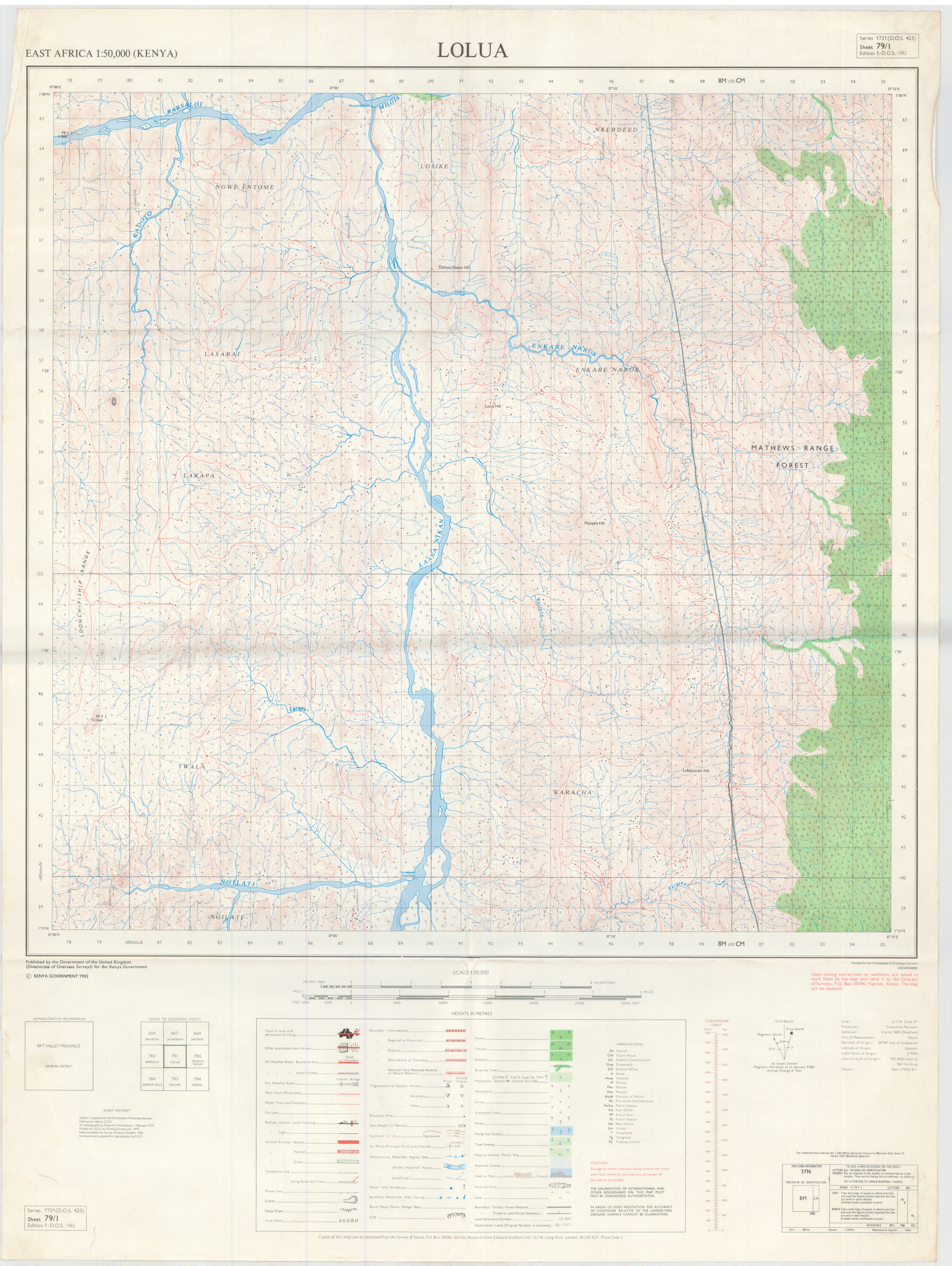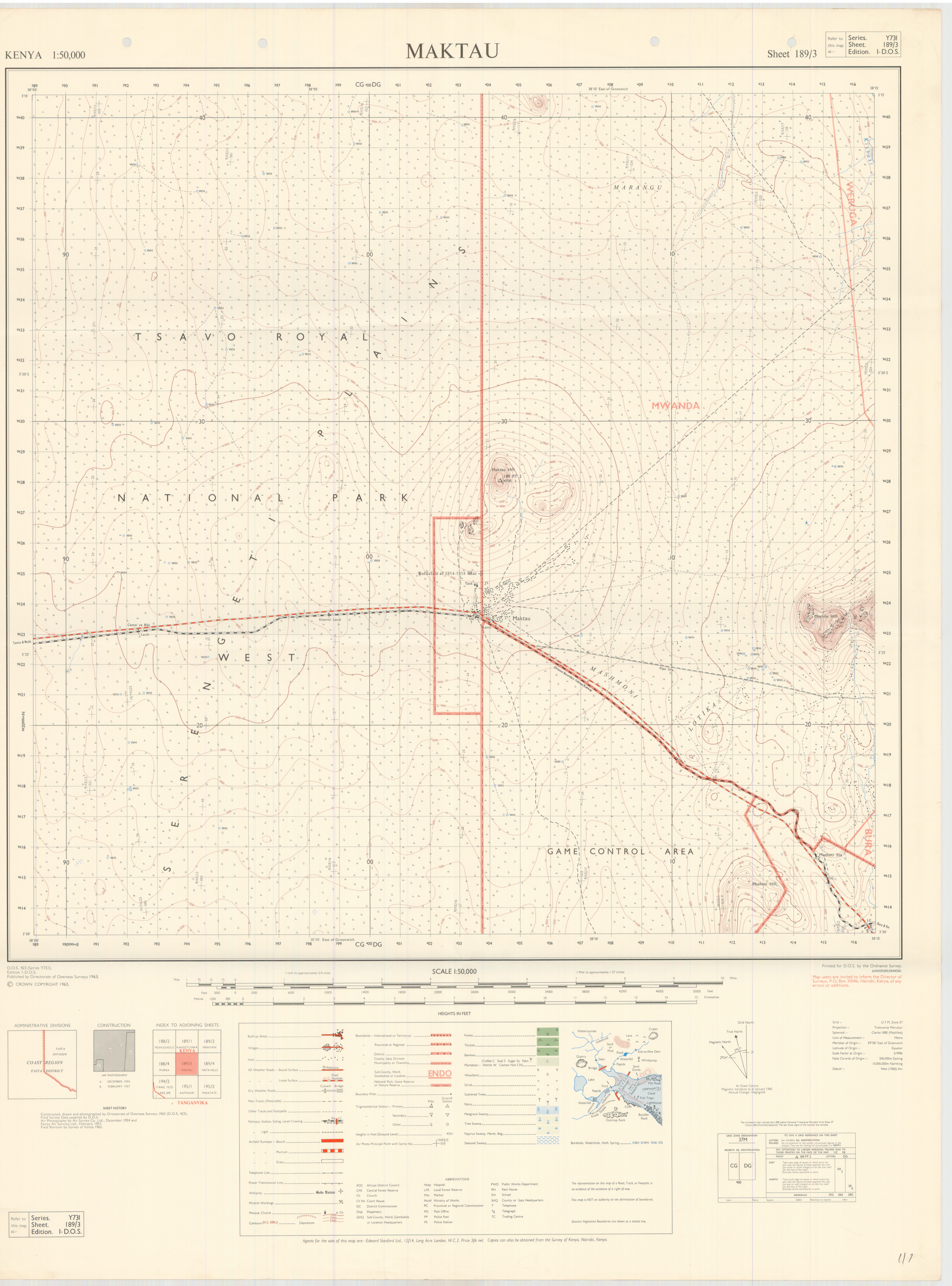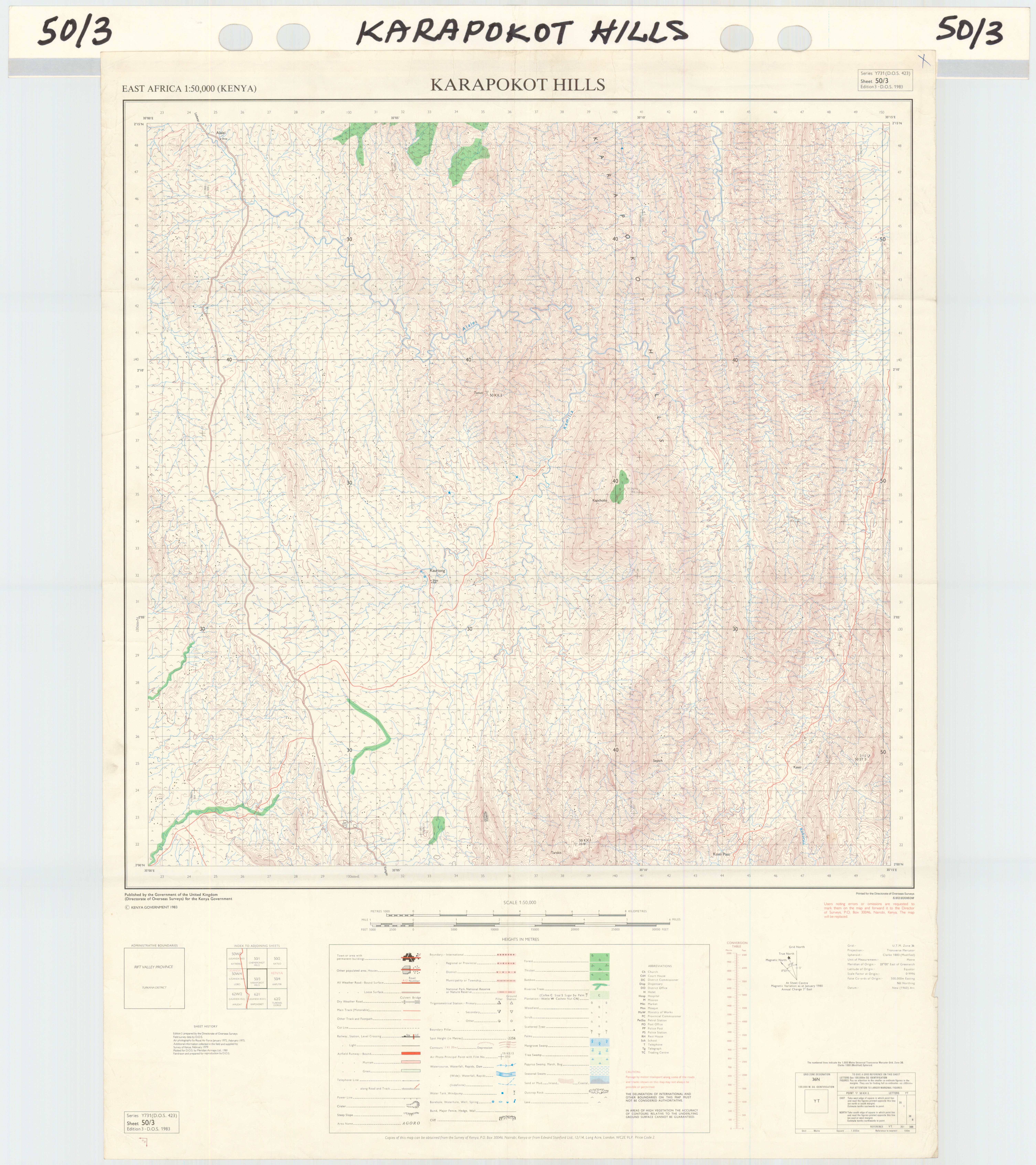 Topographic maps of Kenya 1:50,000 produced by the Survey of Kenya, Great Britain Directorate of Military Survey, Great Britain War Office, Great Britain Air Ministry and the Great Britain War Office, General Staff. Set numbers GSGS Y731, DOS 423, DOS 23, SK 11, GSGS 4786 and DCS 23.