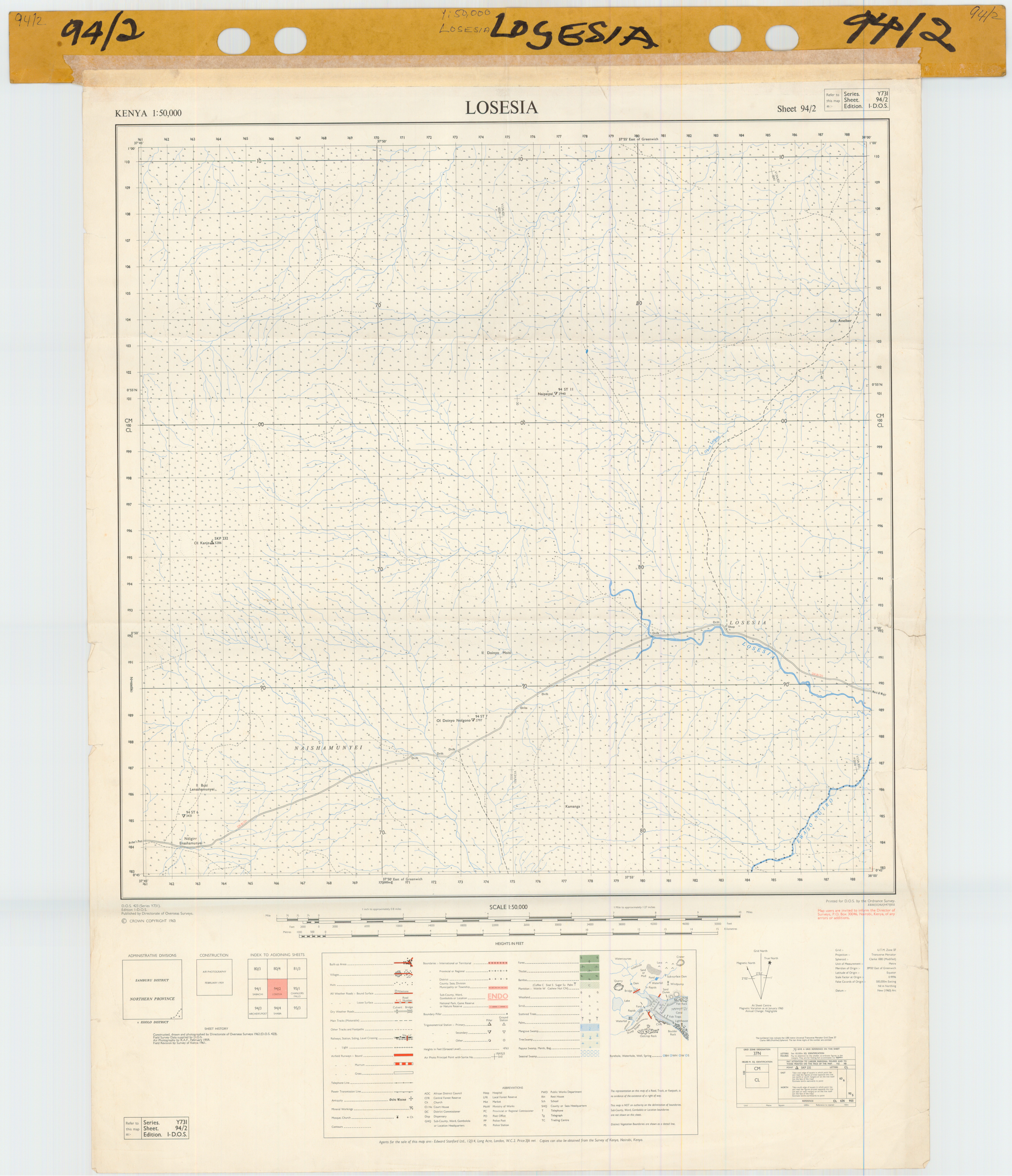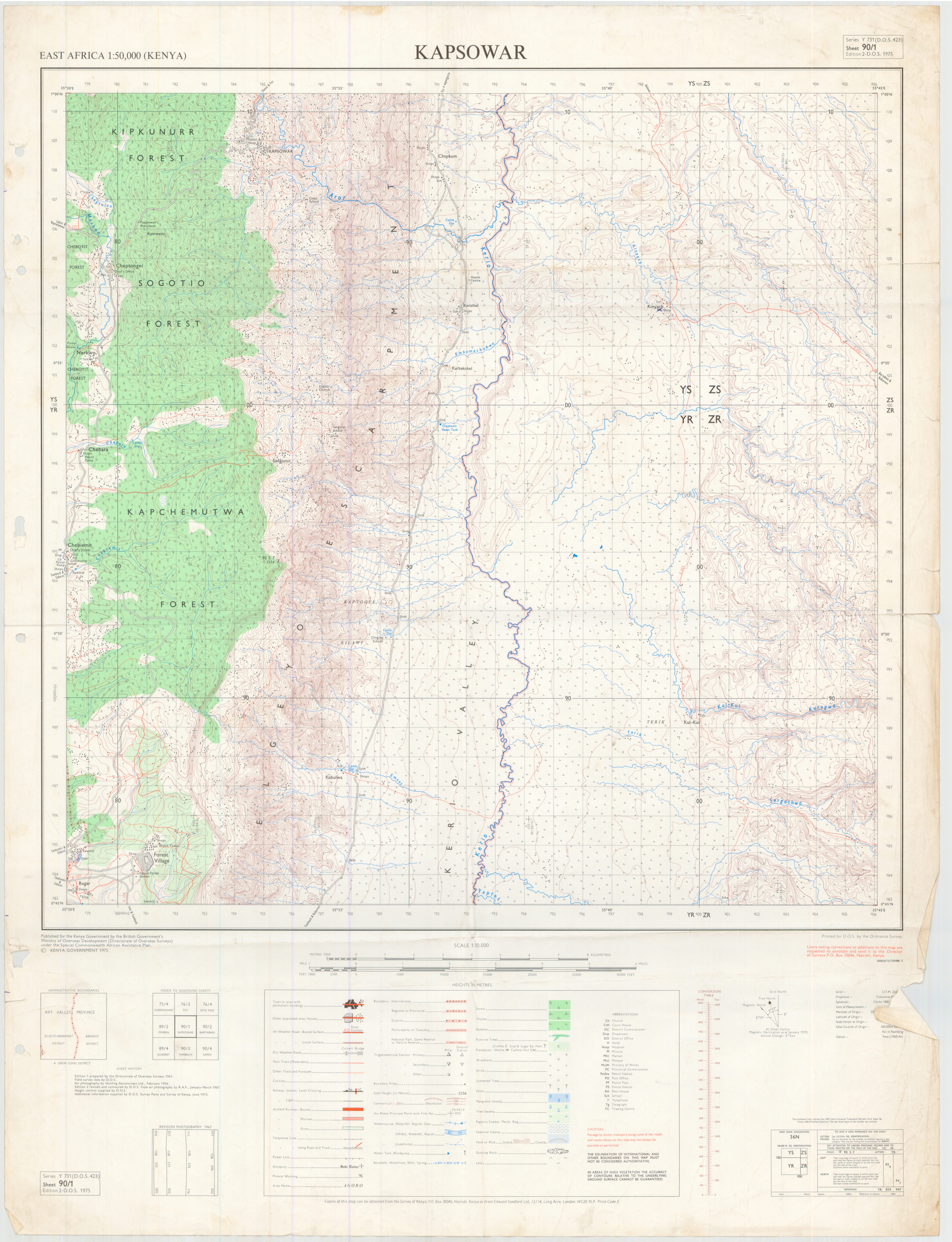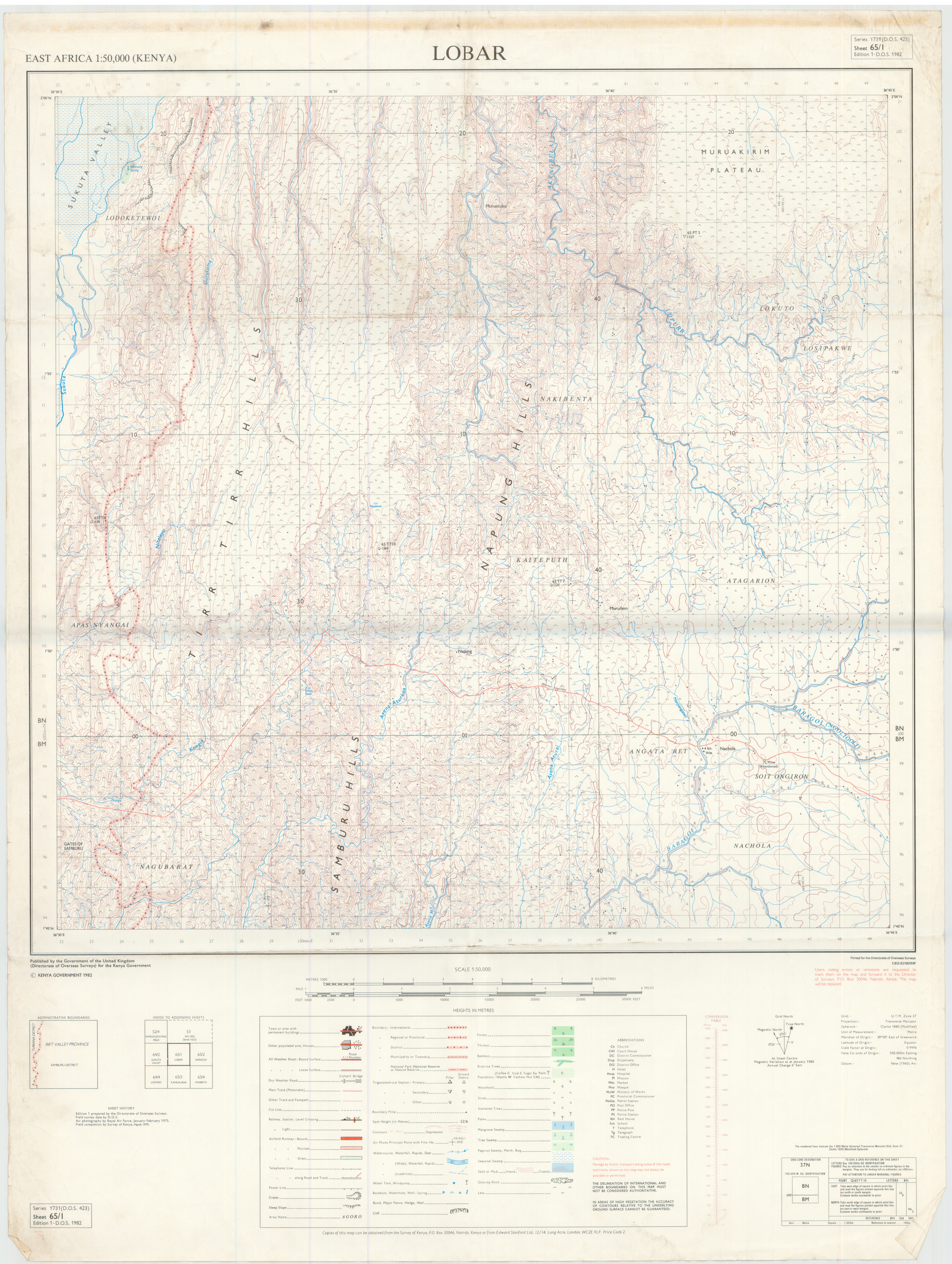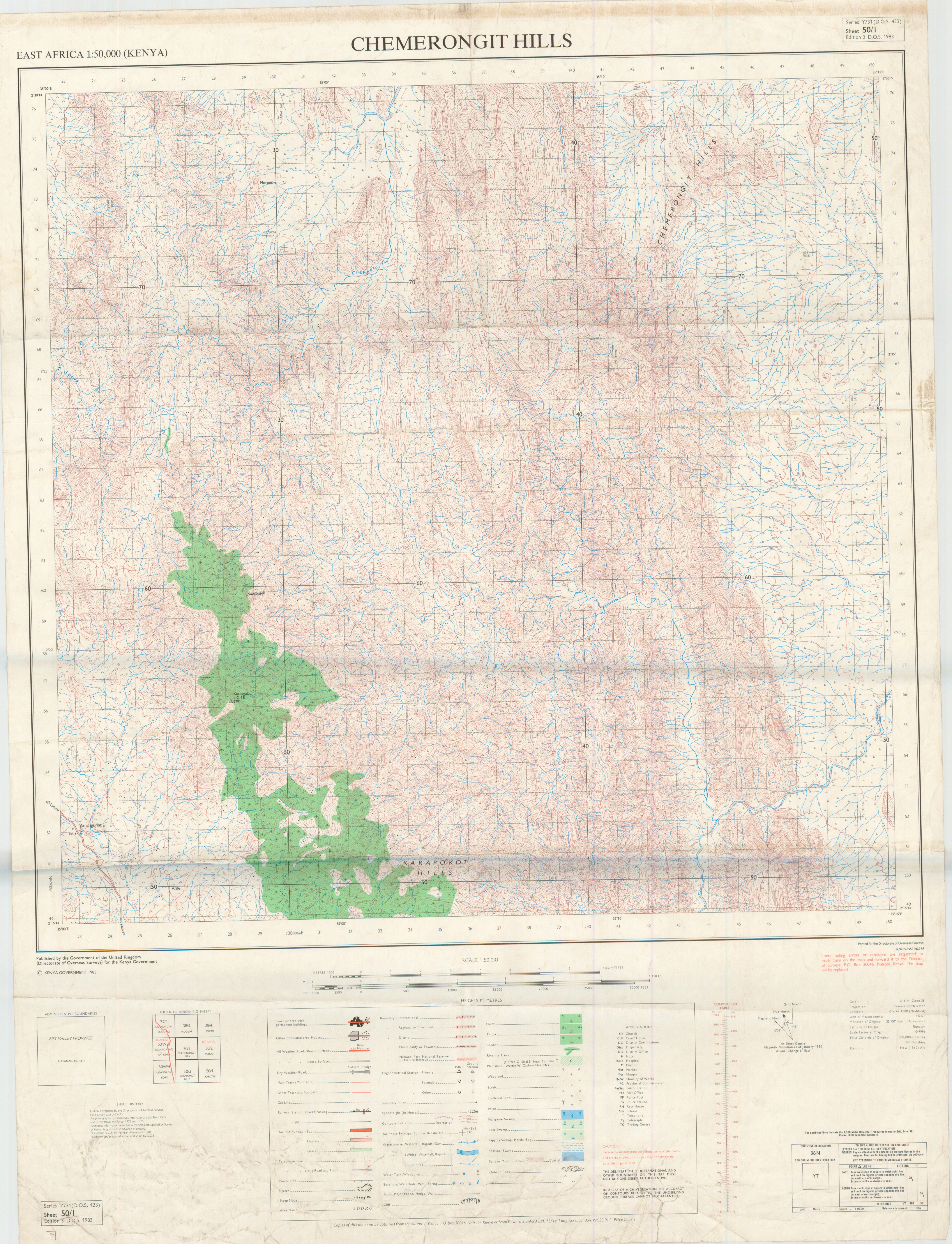 Topographic maps of Kenya 1:50,000 produced by the Survey of Kenya, Great Britain Directorate of Military Survey, Great Britain War Office, Great Britain Air Ministry and the Great Britain War Office, General Staff. Set numbers GSGS Y731, DOS 423, DOS 23, SK 11, GSGS 4786 and DCS 23.