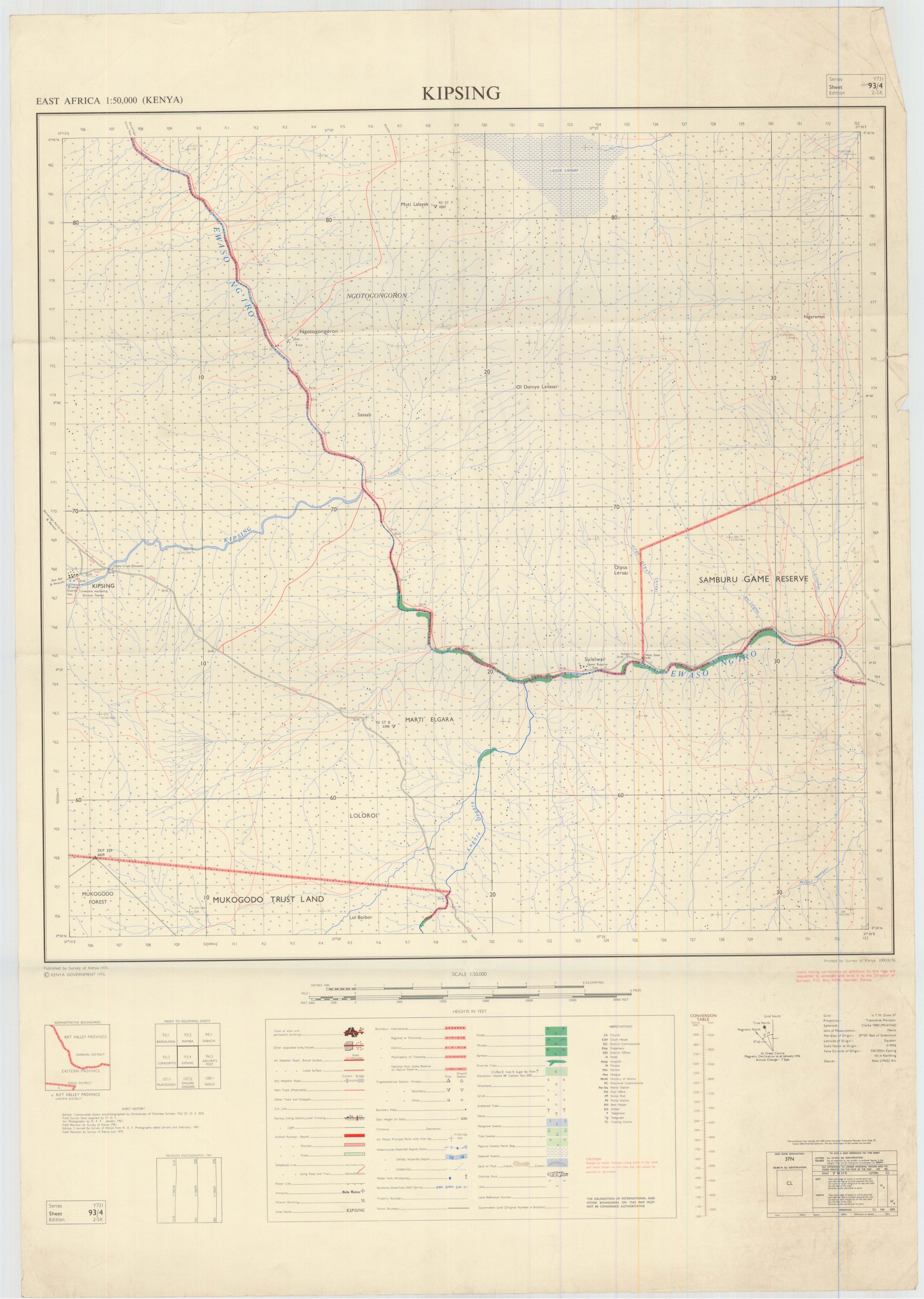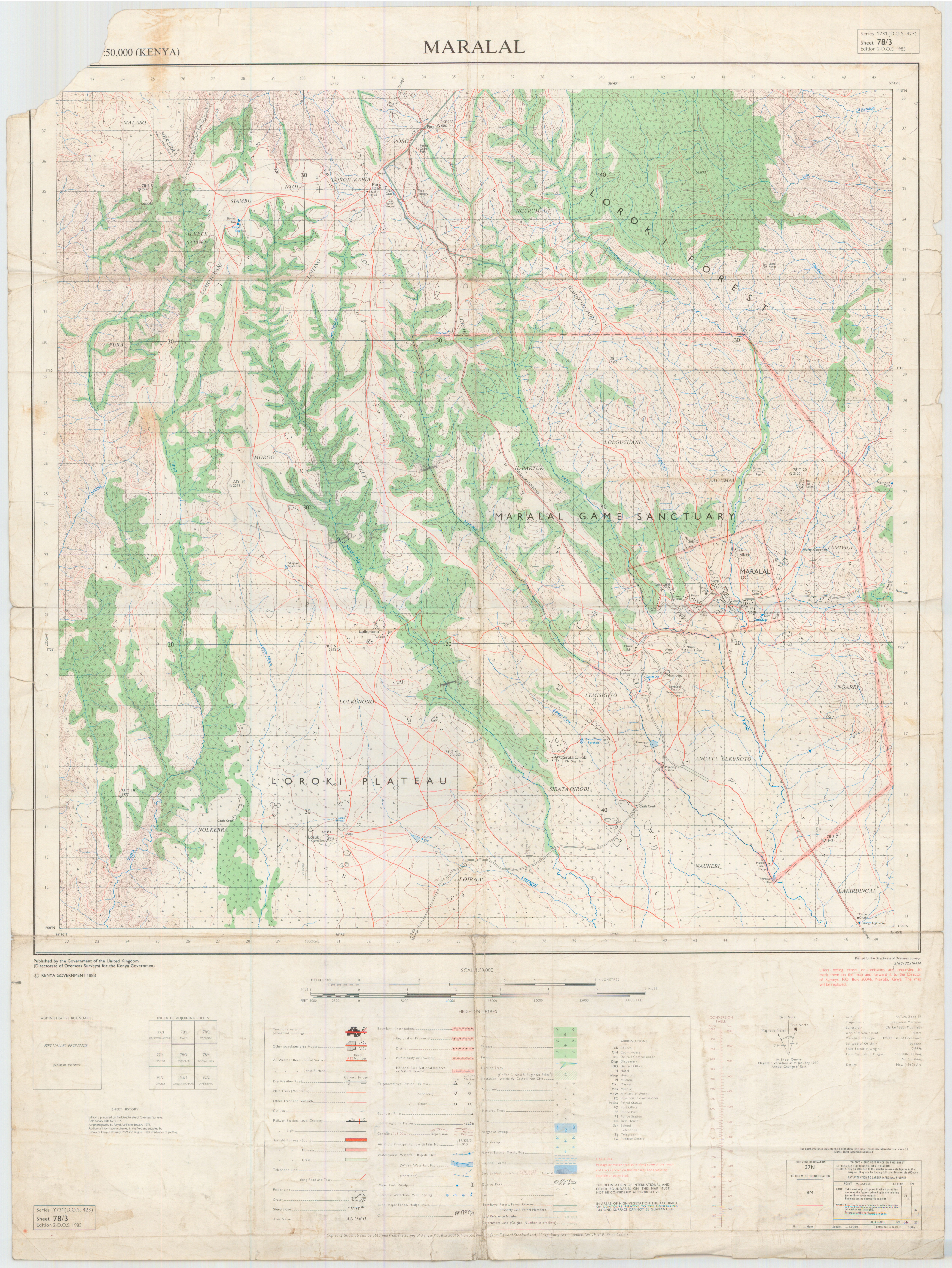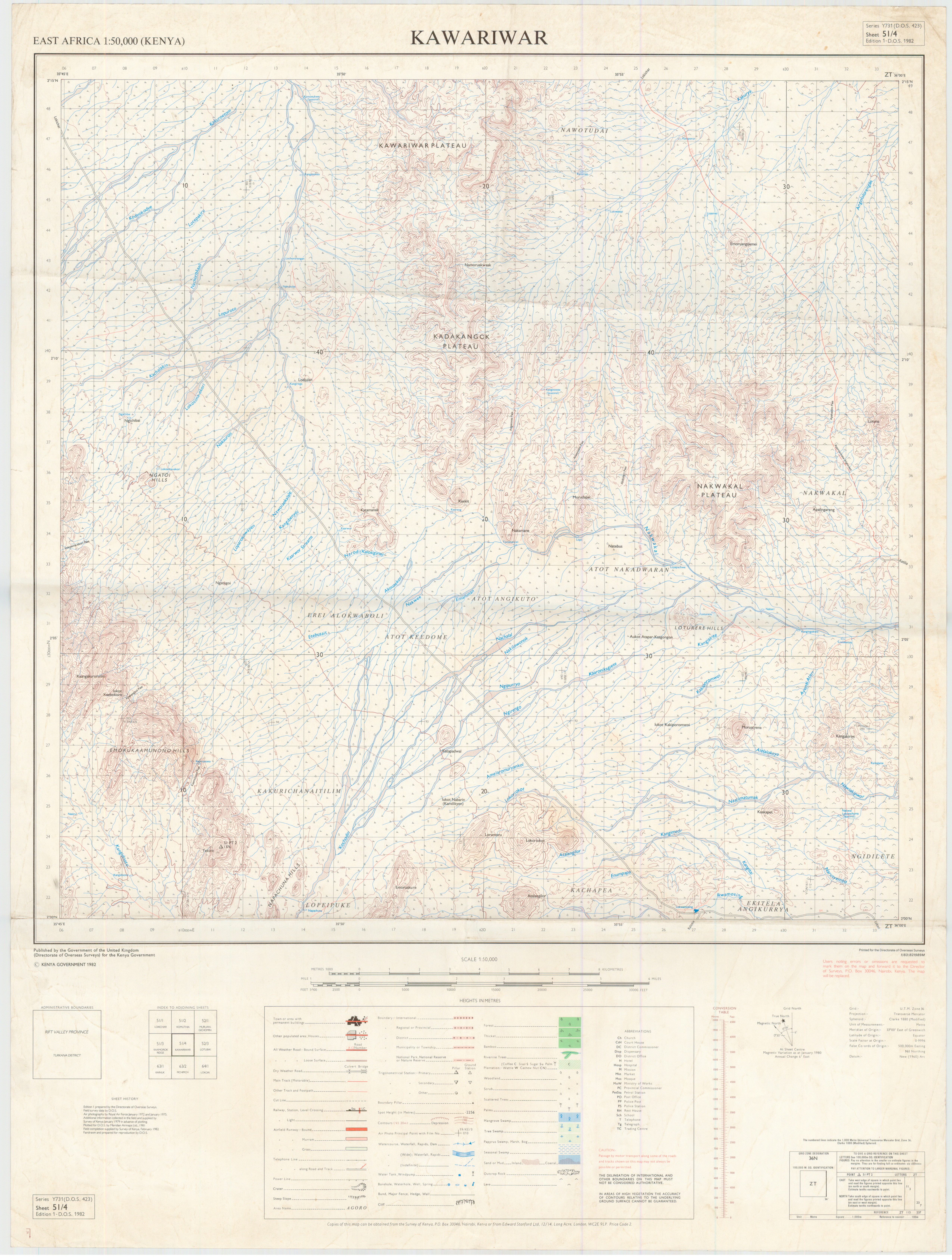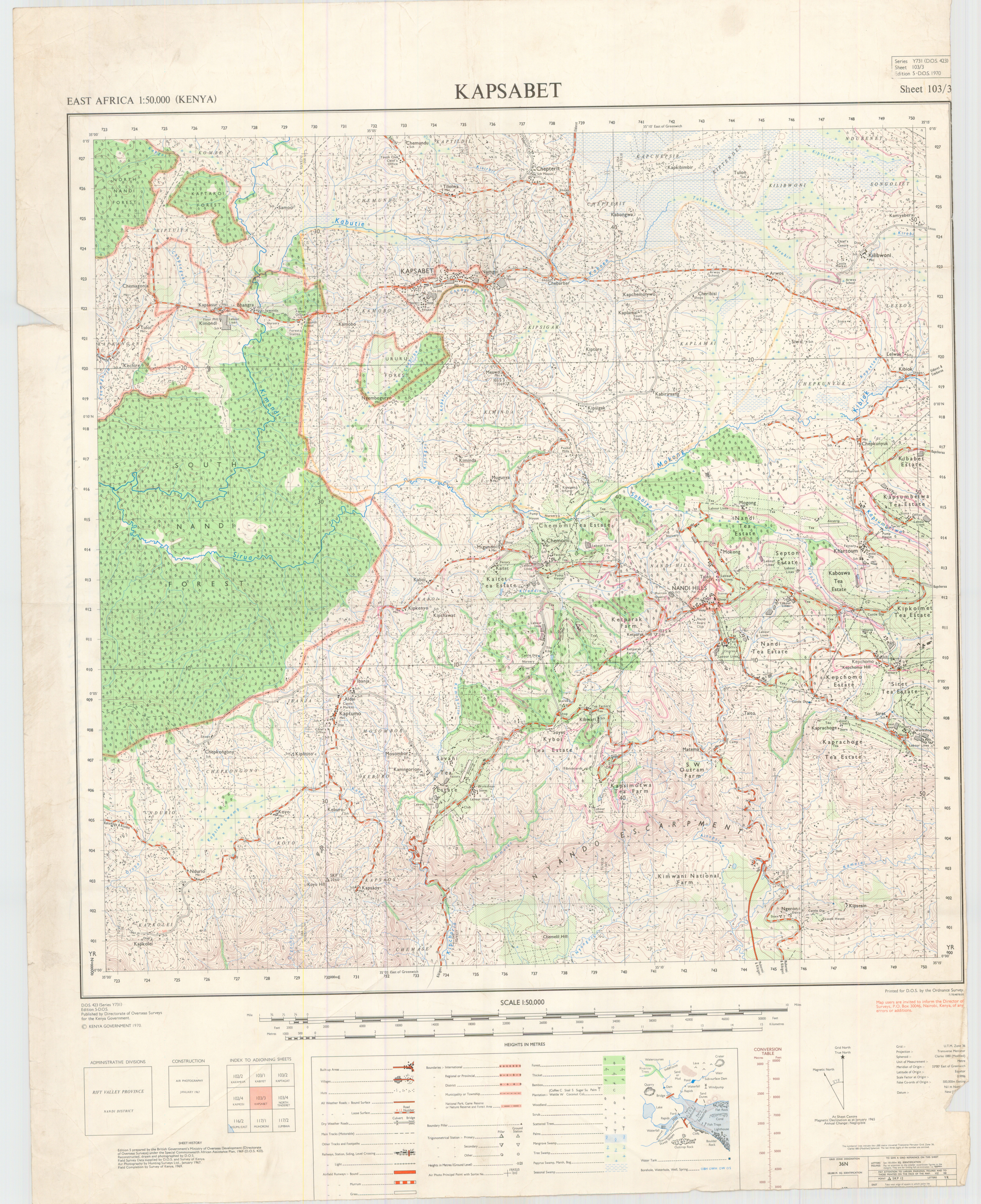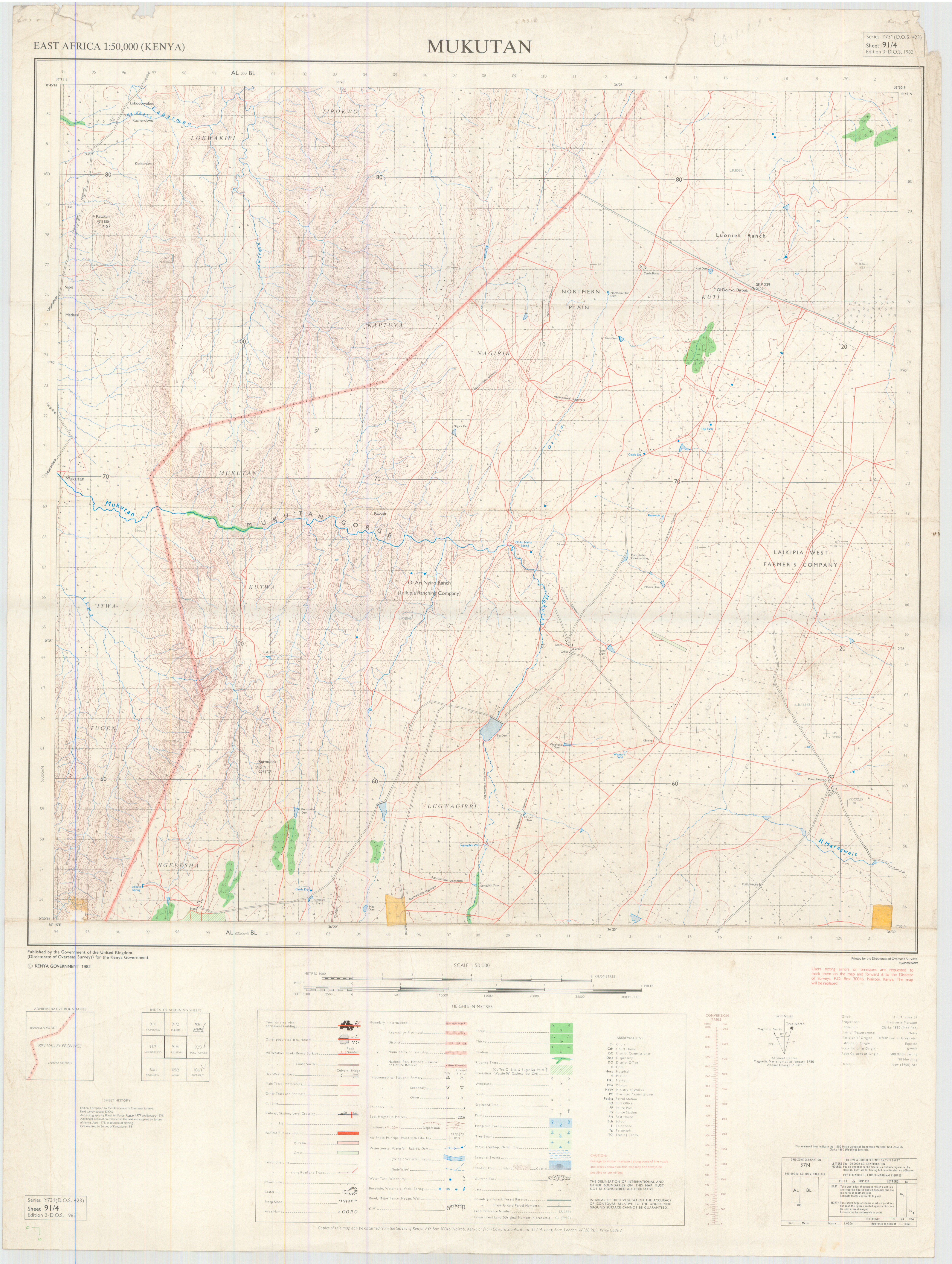 Topographic maps of Kenya 1:50,000 produced by the Survey of Kenya, Great Britain Directorate of Military Survey, Great Britain War Office, Great Britain Air Ministry and the Great Britain War Office, General Staff. Set numbers GSGS Y731, DOS 423, DOS 23, SK 11, GSGS 4786 and DCS 23.