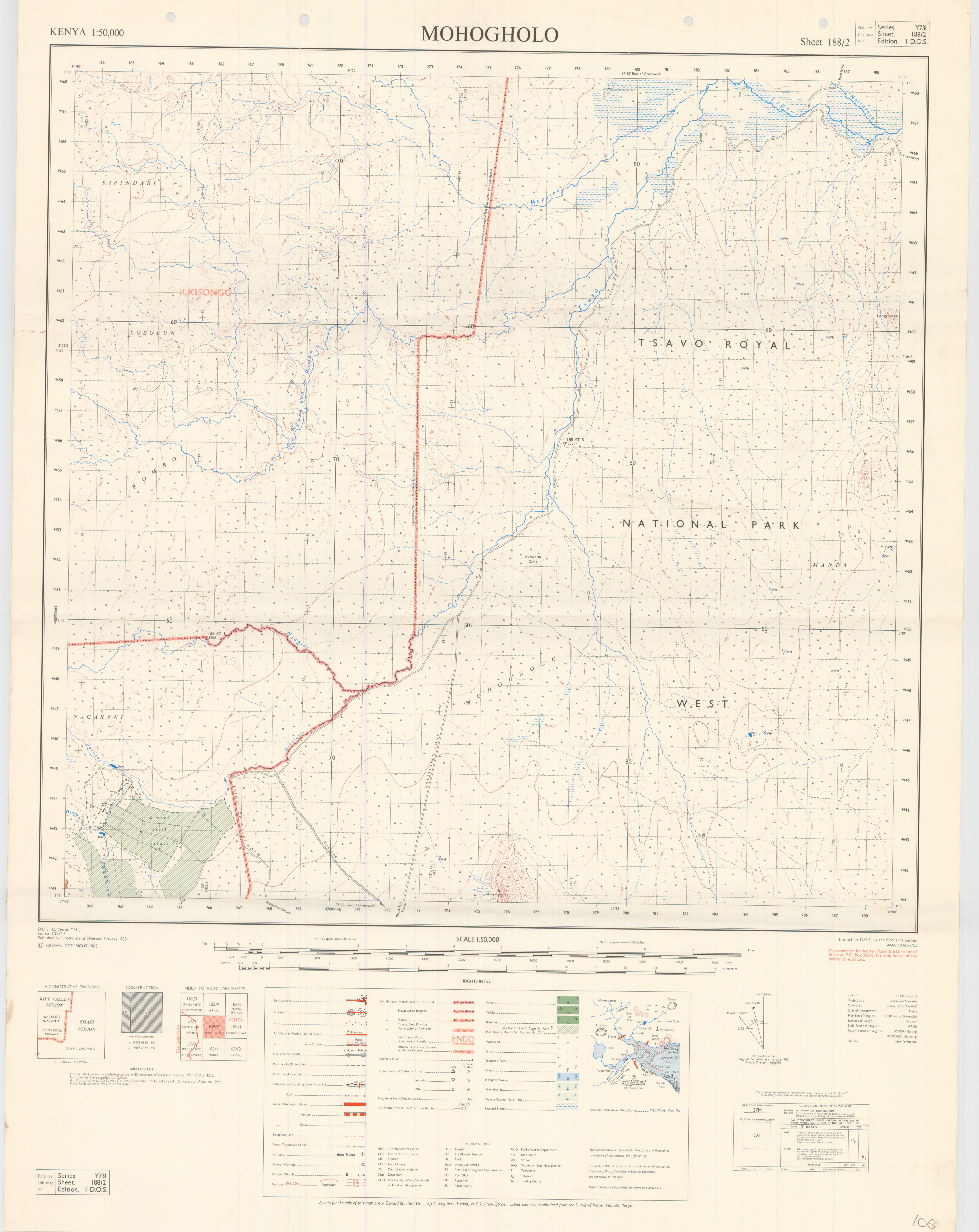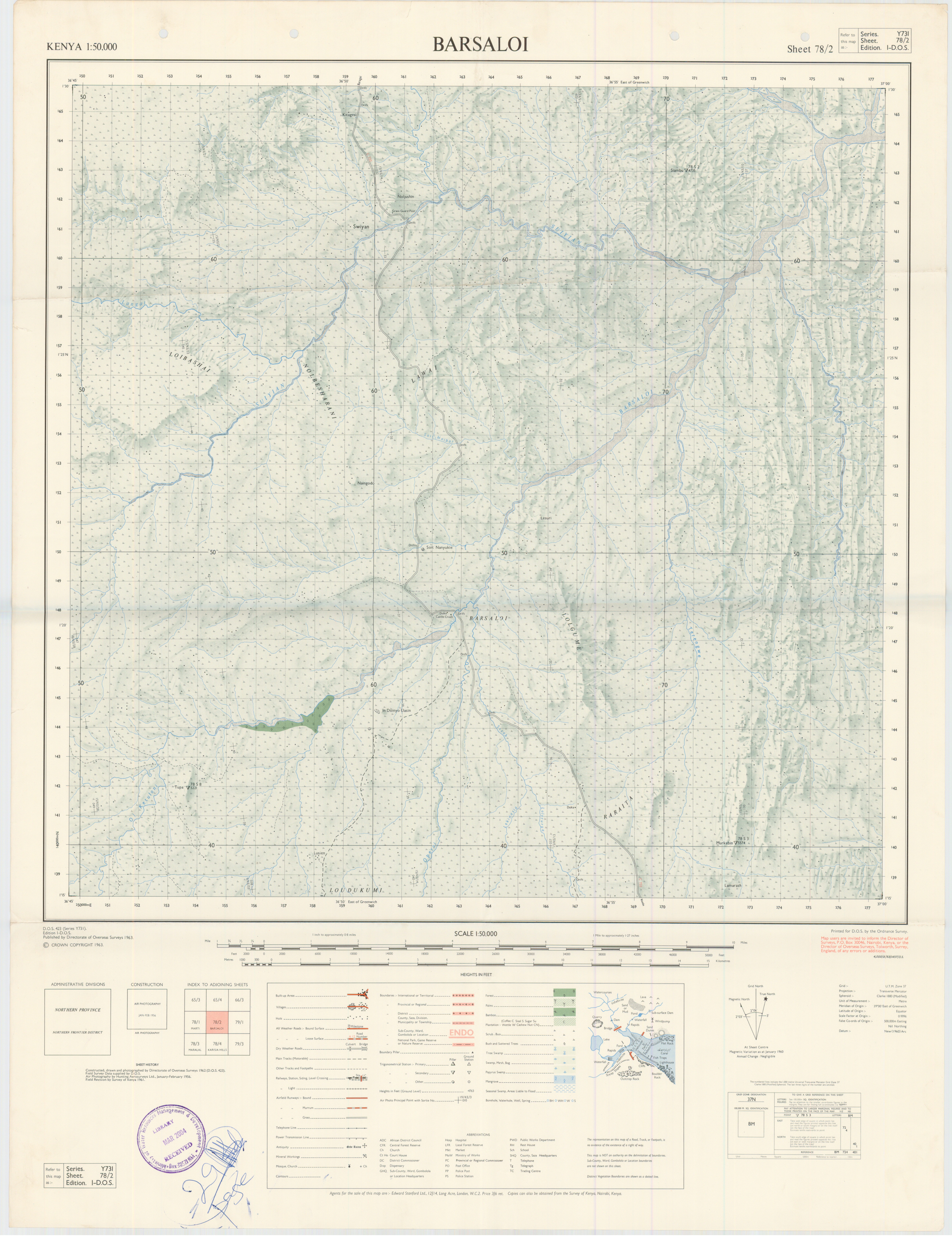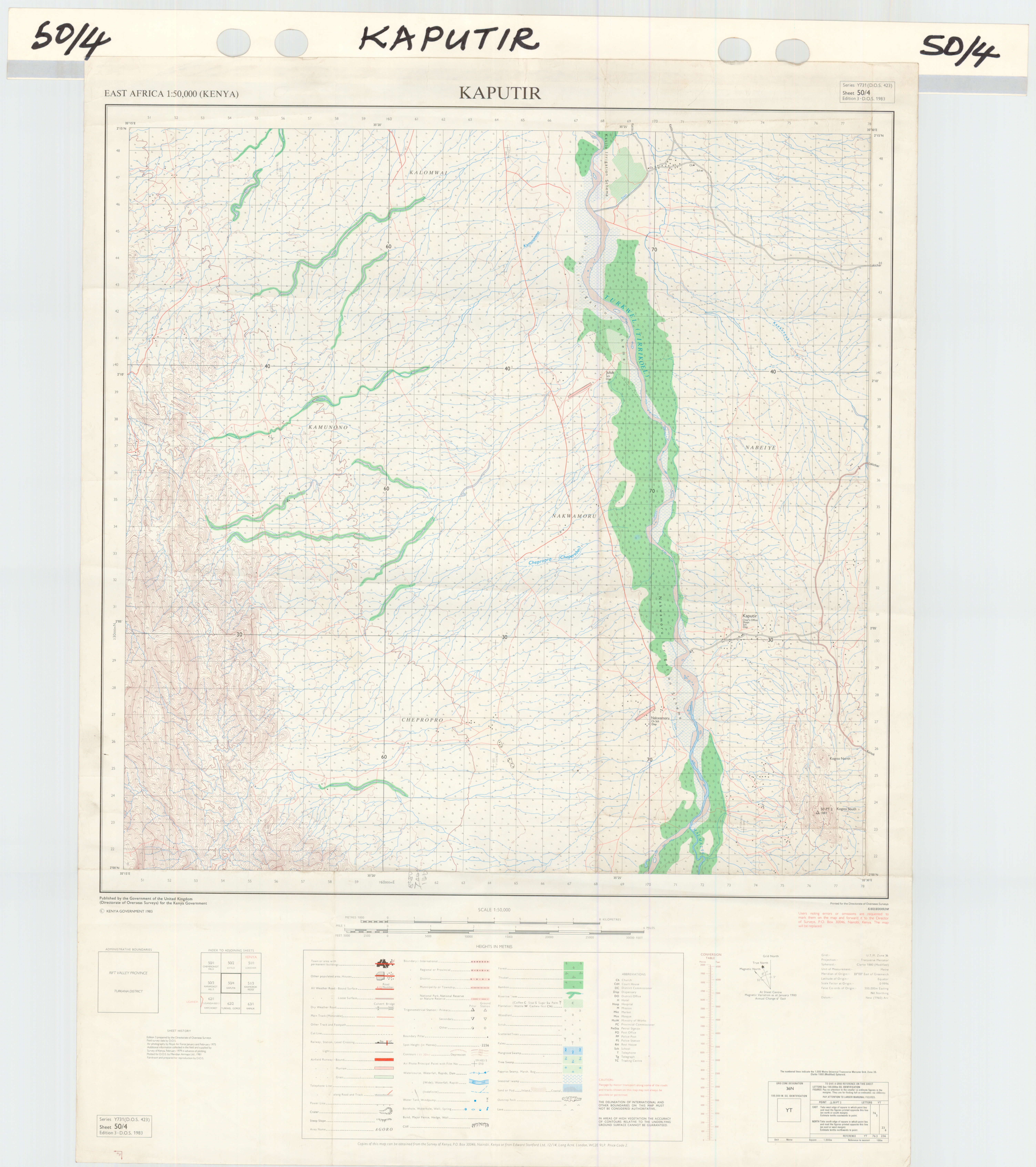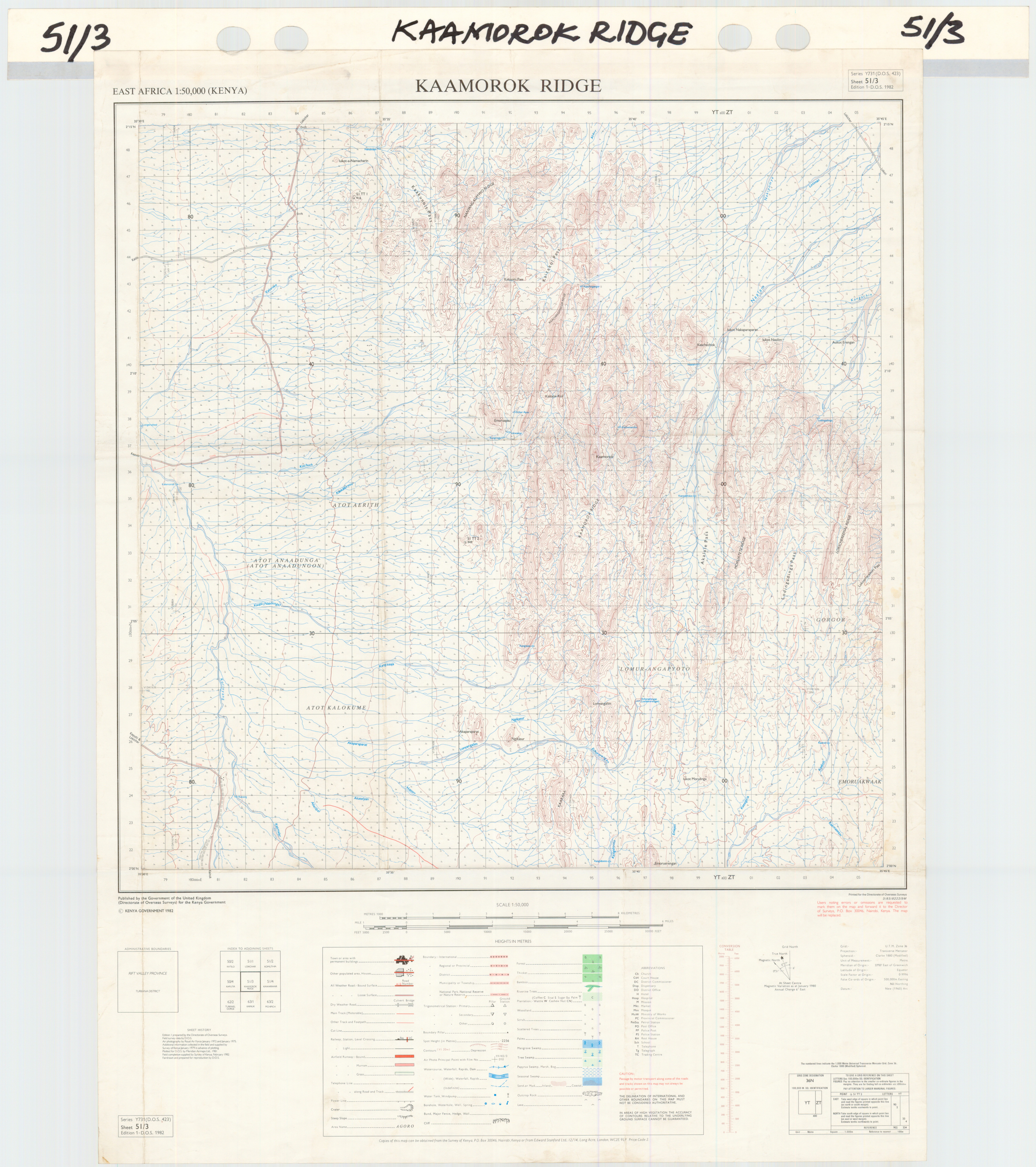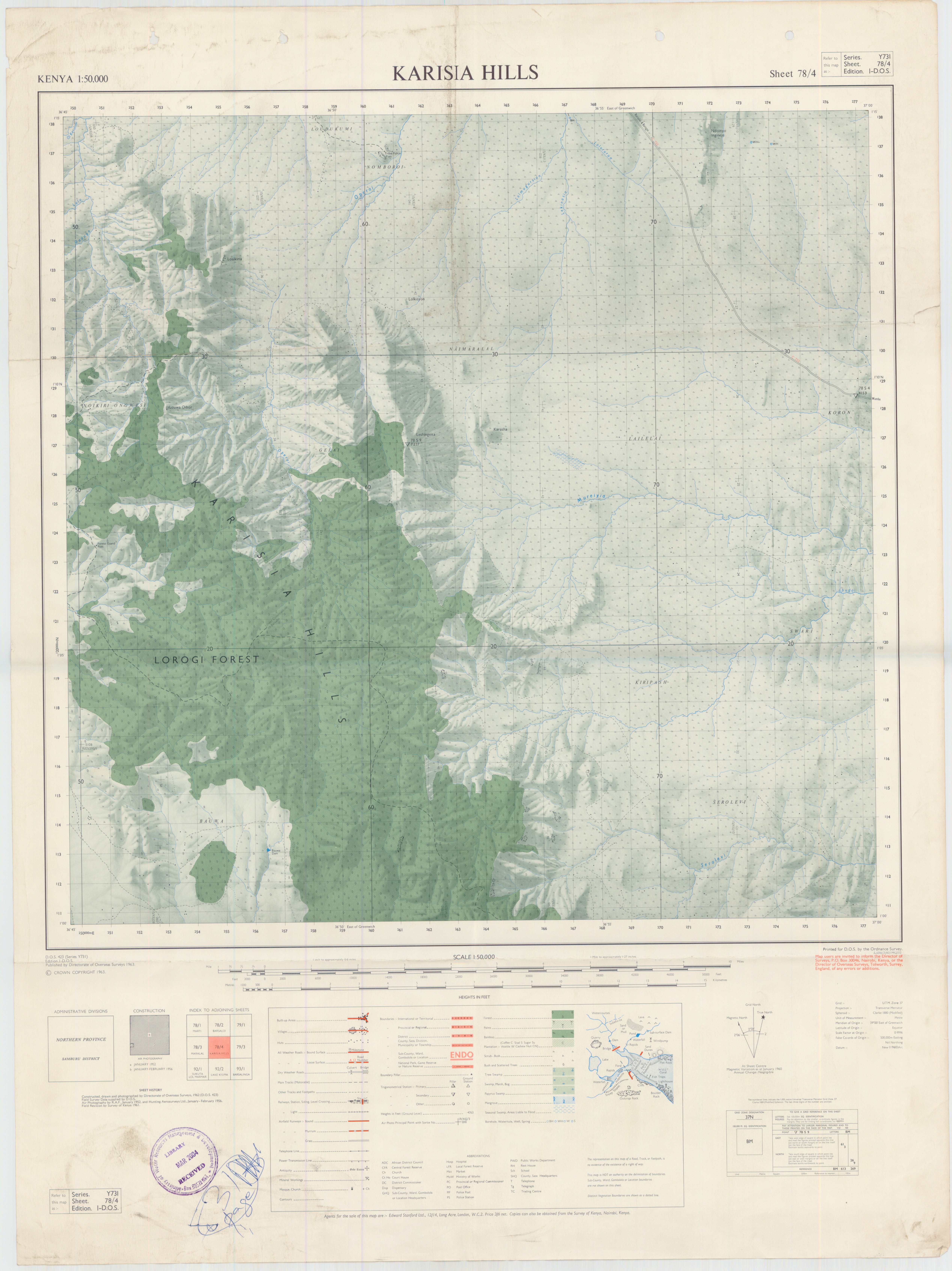 Topographic maps of Kenya 1:50,000 produced by the Survey of Kenya, Great Britain Directorate of Military Survey, Great Britain War Office, Great Britain Air Ministry and the Great Britain War Office, General Staff. Set numbers GSGS Y731, DOS 423, DOS 23, SK 11, GSGS 4786 and DCS 23.