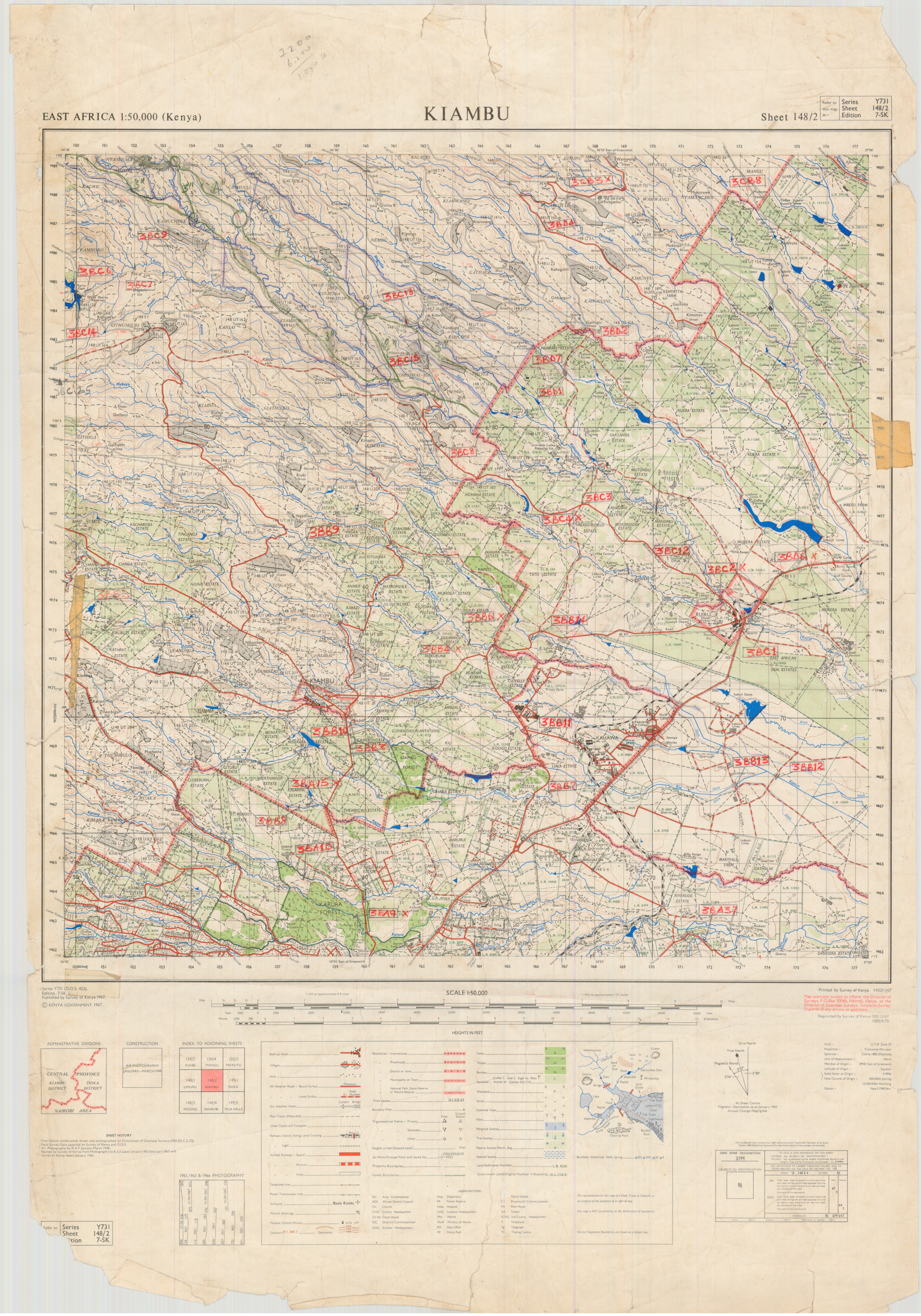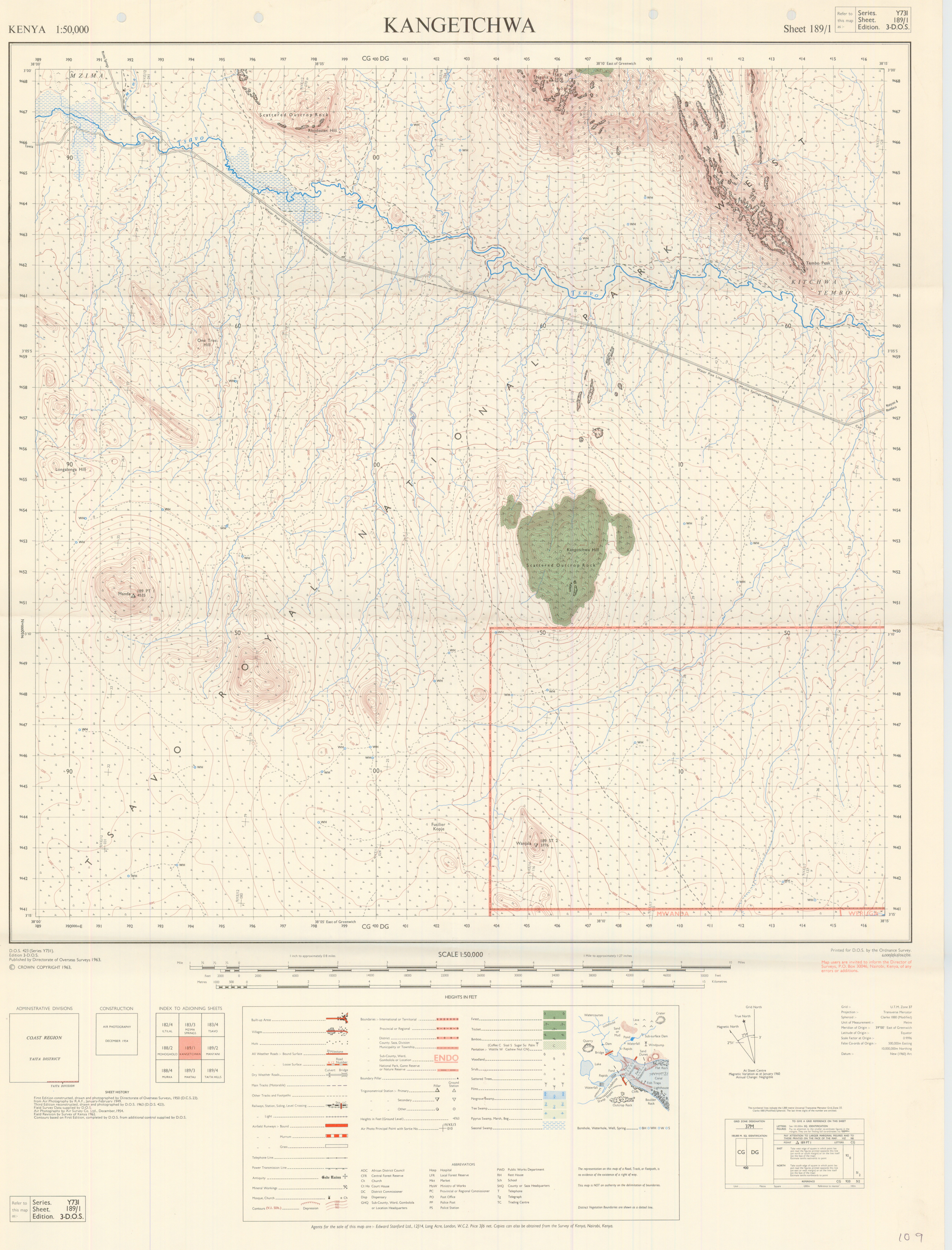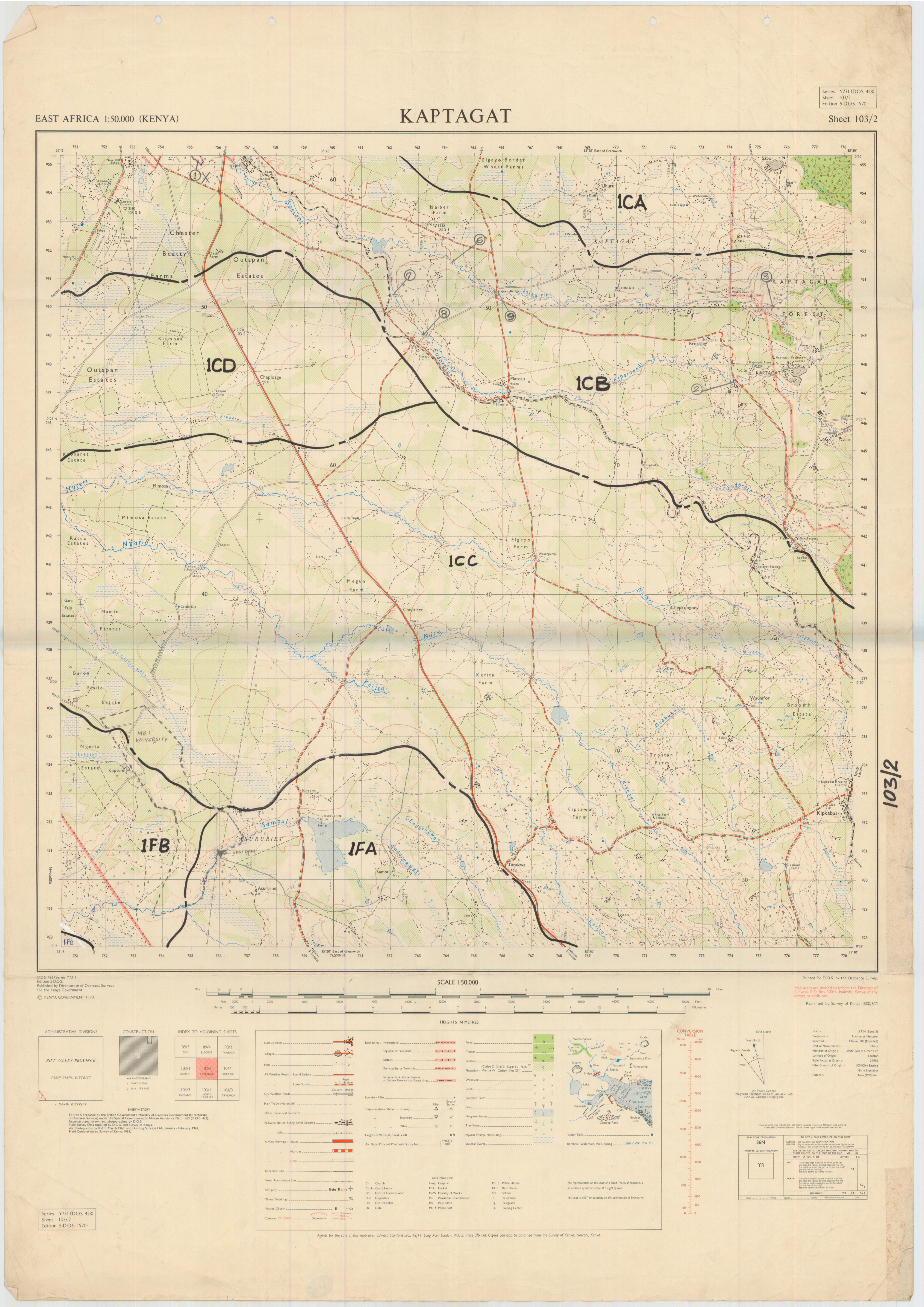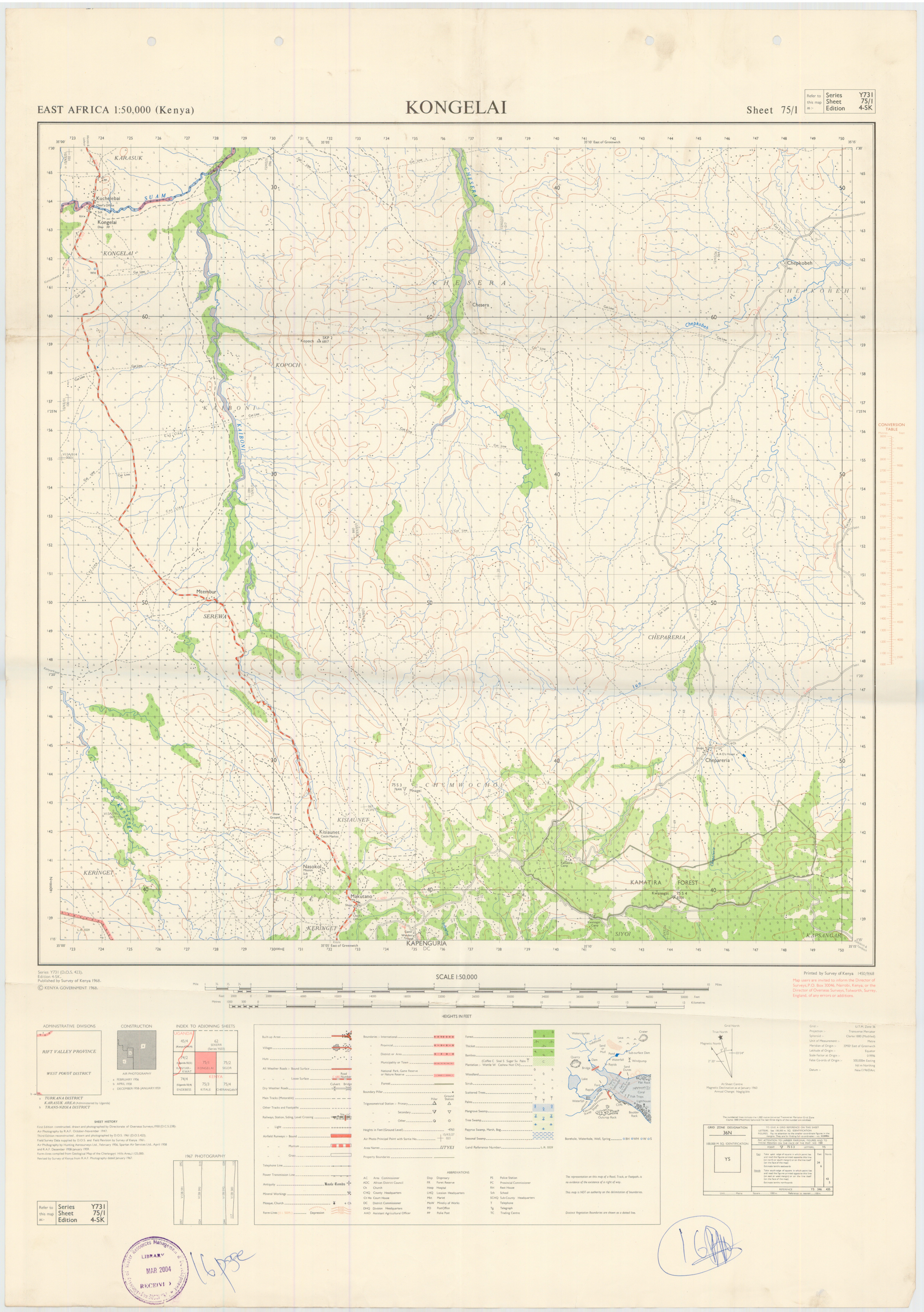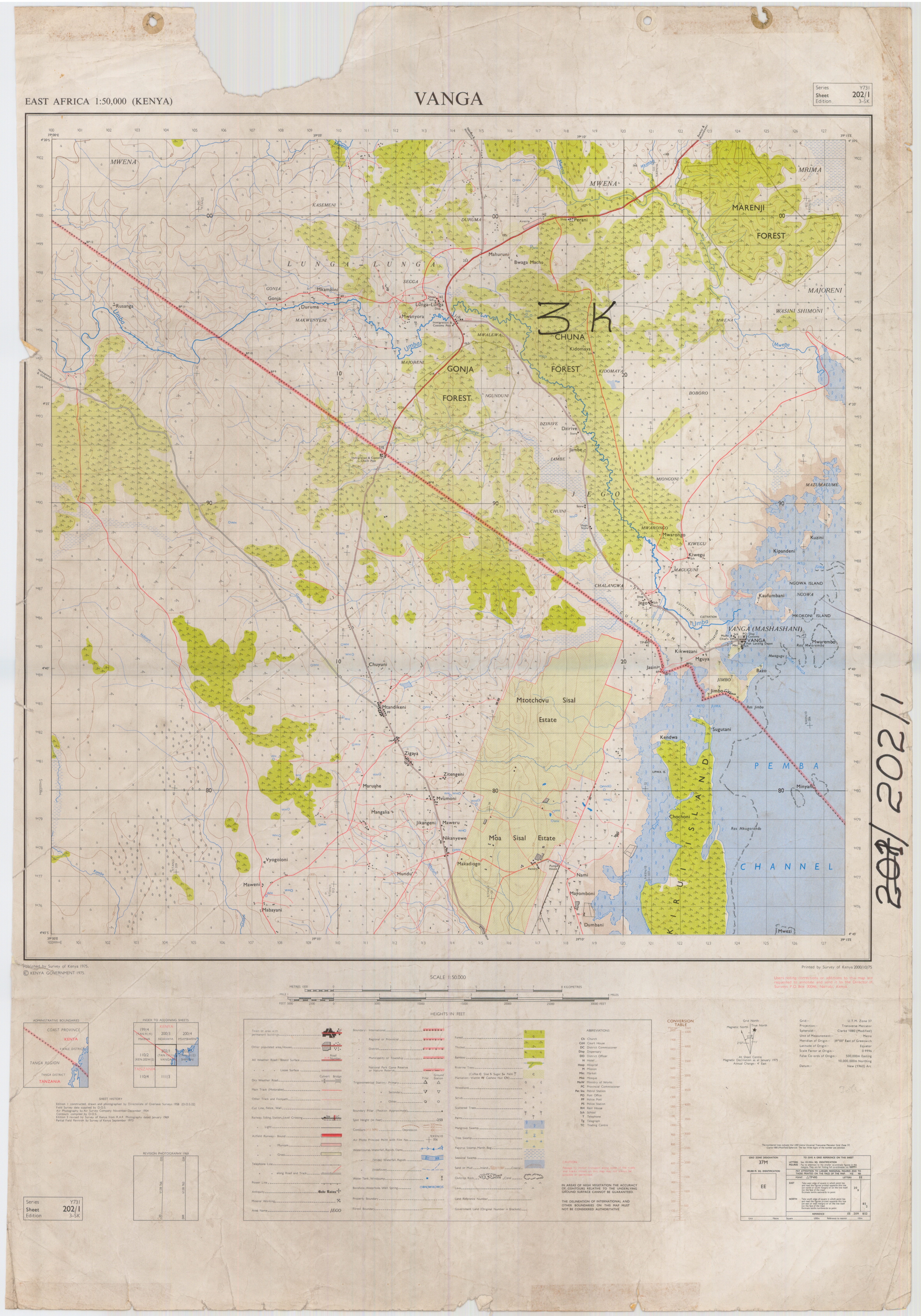 Topographic maps of Kenya 1:50,000 produced by the Survey of Kenya, Great Britain Directorate of Military Survey, Great Britain War Office, Great Britain Air Ministry and the Great Britain War Office, General Staff. Set numbers GSGS Y731, DOS 423, DOS 23, SK 11, GSGS 4786 and DCS 23.