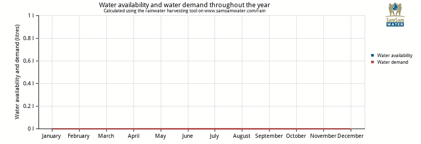 The water demand is litres per day, which equals to about 0 litres per month. The total water demand is 0 litres (0 m³) per year.